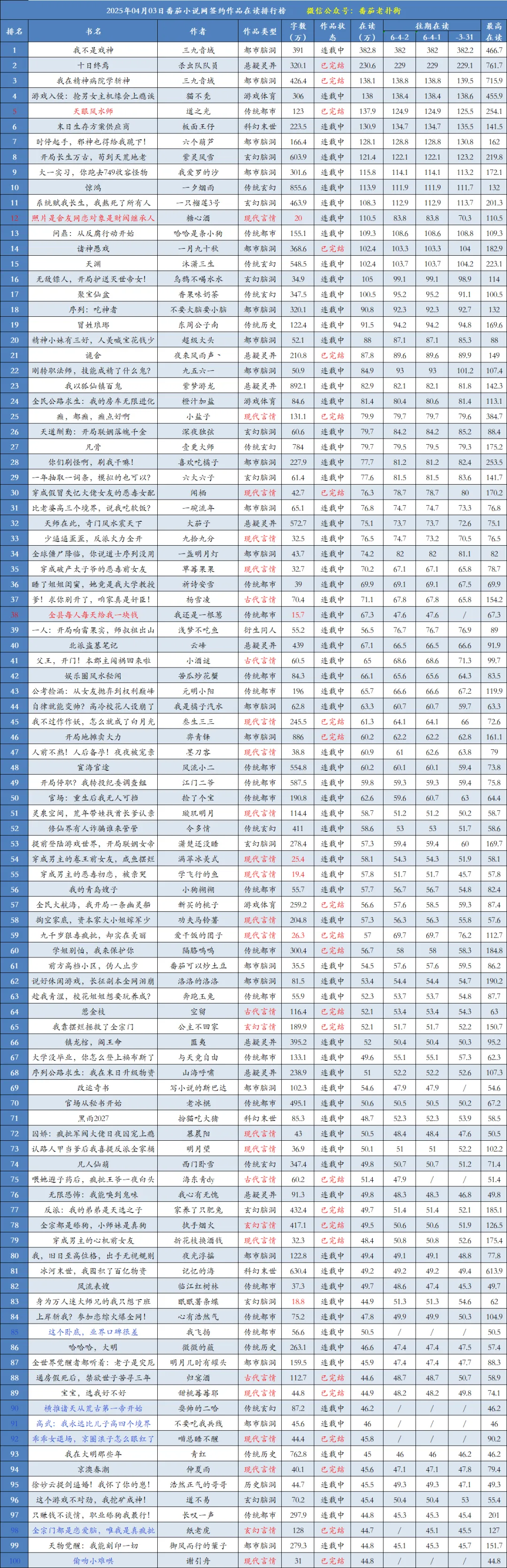 3.部分作品曾更改过书名,本统计以PC端显示的书名为准。