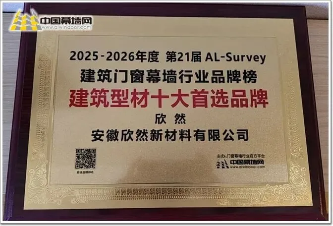 >欣然新材料荣获“2026铝型材十大首选品牌”称号