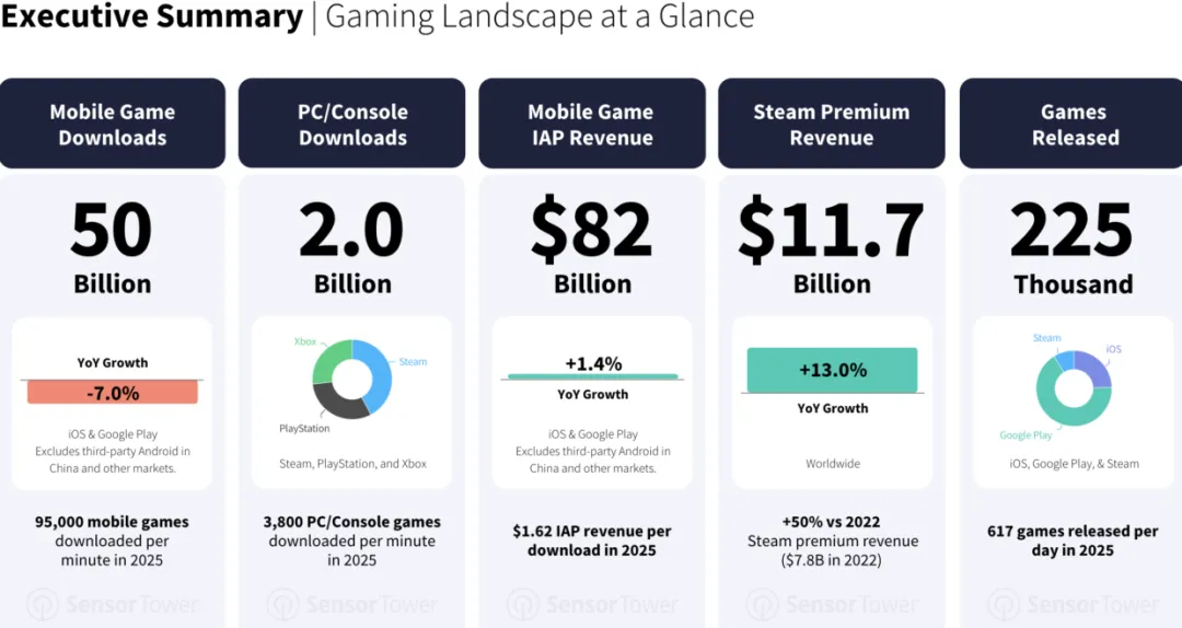 Sensor Tower刚刚发布了《State of Gaming 2026》报告,为手游行业提供了一个刺眼的事实:2025年,全球手游收入817.5亿美元,同比增长仅1.3%;非游戏应用收入达到852.5亿美元,历史上第一次超过了游戏换句话说,“大人,时代变了”,手游的吸金能力相对下降了,已经有其他赛道,切走了手游的蛋糕Sensor Tower的报告给出了明确的答案:非游戏应用收入增长21%,背后有三匹跑得最疯的黑马:AI、短剧、社交&流媒体AI应用,收入暴增:这是2025年移动端增长最猛的品类,没有之一。ChatGPT、Midjourney、各种AI写作和AI绘图工具的订阅费,正在成为手机上最大的新增消费项,关键是这类消费黏性极强——一旦用惯了AI助手,续费率远超手游短剧应用,收入倍增:短剧的上榜丝毫不让人意外,不仅仅是中国的用户对短剧上头,海外的大量用户已经习惯“花钱看5分钟爽剧”,2025年短剧应用下载量暴增278%。短剧的付费逻辑跟手游很像——碎片时间消费、即时满足感、小额高频付费,但用户获取成本更低,内容生产更快,ROI反而更高,对手游的冲击不容小觑社交和流媒体,稳如老狗:TikTok、Netflix、Spotify这些老玩家依然吸金能力强劲。社交网络占非游戏应用收入榜首,多款产品占用户日均使用时长超过90分钟,流媒体订阅已经是很多用户手机账单上的固定支出把这三块加起来看,一个清晰的画面出现了:手游的用户,正在被AI订阅抢走钱包、被短剧抢走碎片时间、被社交平台抢走注意力手游的困境不仅仅是“被抢”,自身的增长也在失速。Newzoo的数据显示,2025年全球游戏市场1888亿美元,手游占55%,但增速仅2.9%,手游下载量504亿次,连续第二年下滑,同比掉了7%——这很危险,意味着手游的人口红利已经耗尽,全球能转化手游玩家的用户基本被洗过一遍了而PC和主机合计增长13%,很多重要的游戏,也将跨平台上线作为重要发行手段,手机作为唯一游戏设备的用户比例在持续下降是的,虽然现在仅仅是开端,而变局的驱动力不是像2010年代那样开始于游戏行业内部,而是整个数字内容消费生态的重构用户的注意力是有限的,反映在手机上,就是日均使用时长是有限的以前手游能抢到最大的那块时间蛋糕,是因为其他竞争者的竞争力有限,但现在短视频提供了更敏捷高频多巴胺、ChatGPT提供了更实用的价值、短剧提供了更低的付费门槛——手游的护城河正在从四面八方被渗透对游戏从业者来说,最该思考的问题不只是“手游怎么做得更好”,而是回归第一性原则:当用户愿意为AI和短剧付费的时候,游戏怎么提供同样的情绪价值?如果不能,那Sensor Tower这张图上的红线,只会继续往下走