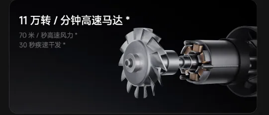 ①电机转速≠干发速度:同为 11 万转马达,实际干发效率差异显著,风速还受电机品质、扇叶设计、轴承配置、风道优化等多重因素影响;