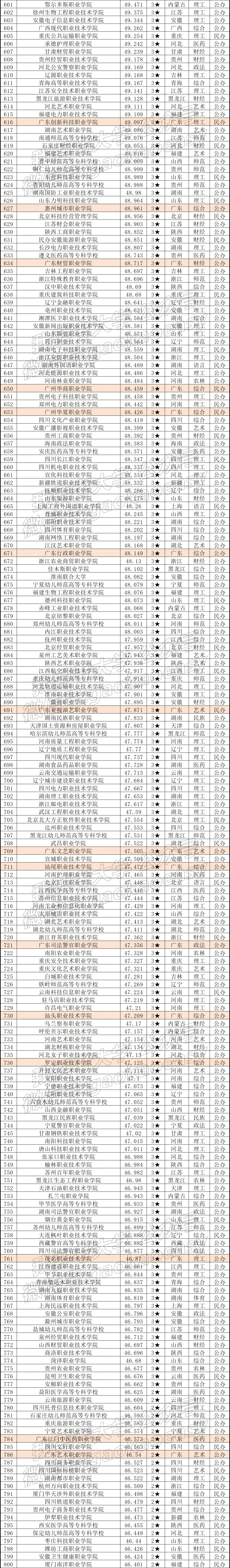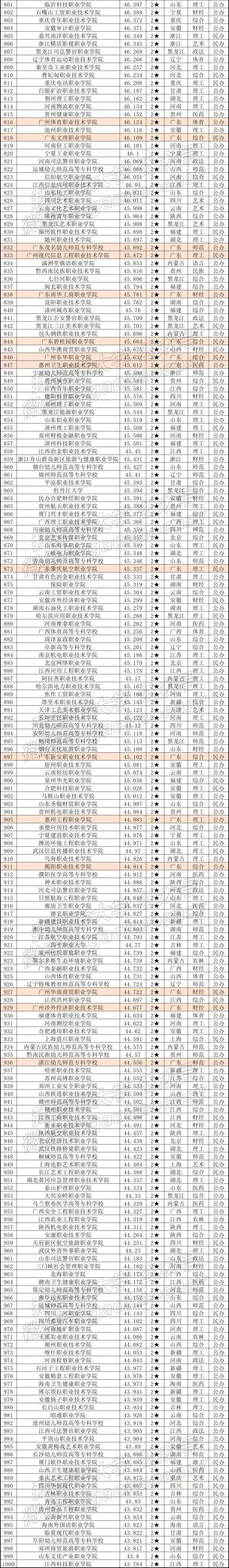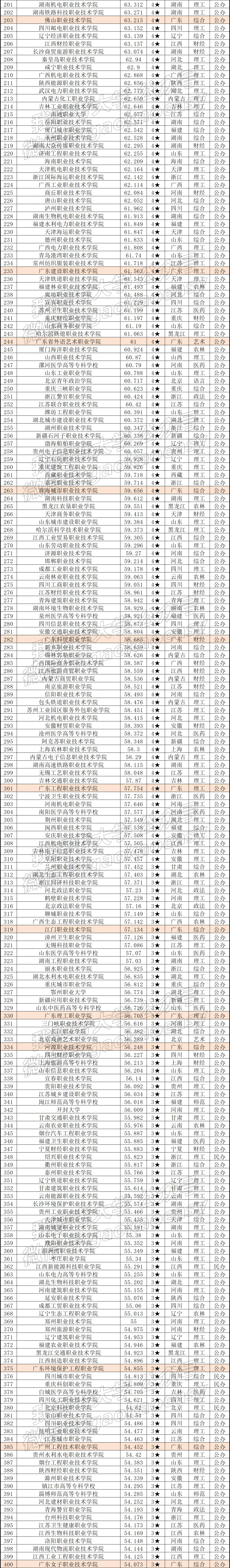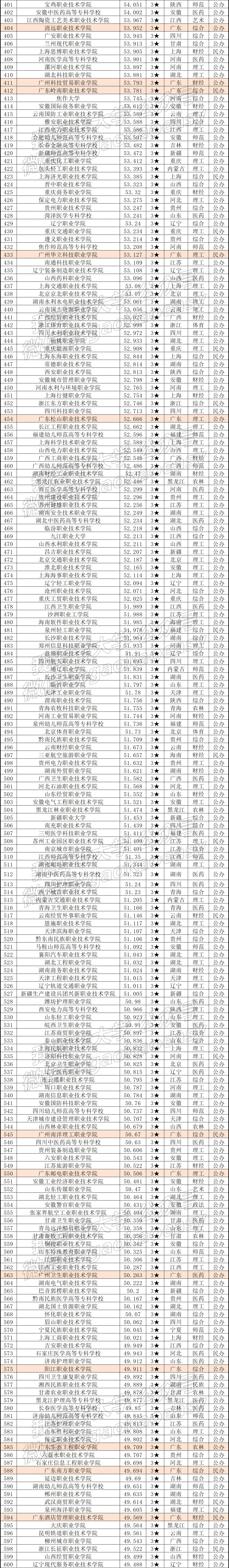 排名靠后的有湛江幼专、揭阳职院、惠州工程职院、惠卫职、南华工商职院、茂名幼专、广州体育职院,均在全国800名开外。