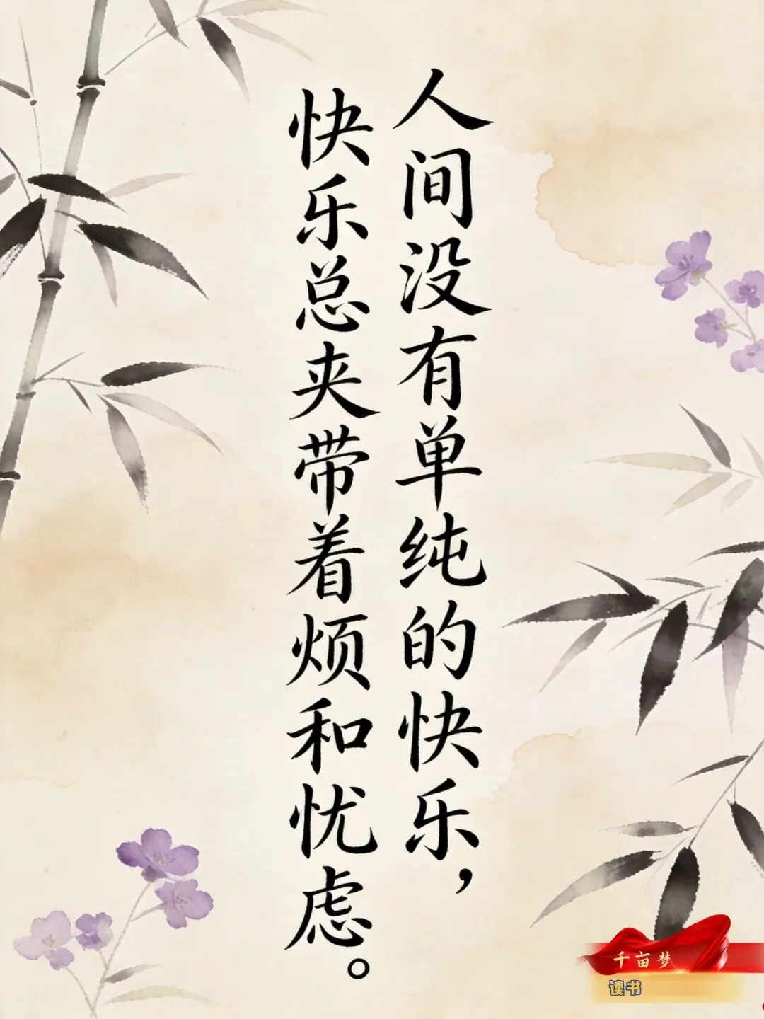 “人间没有单纯的快乐,快乐总夹带着烦恼和忧虑。”这句话道出了生命的真实。