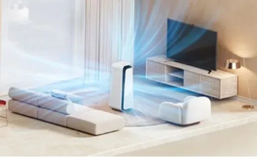 强劲净化能力↣搭载高效滤网与优化风道,快速降低室内甲醛、粉尘浓度,大空间也能快速循环净化,效果稳定