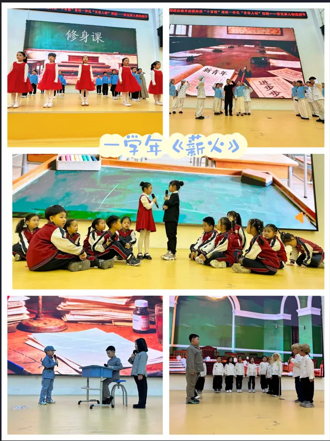 学生们凭借沉浸式戏剧表演,让榜样的故事如璀璨星辰,照亮舞台:从二学年带来的《少年航天梦》中,见证少年们怀揣航天憧憬,循着千年追梦足迹奔赴浩瀚星空,尽显少年报国的炽热志向;到一学年的《薪火》,看少年跨越时空与周恩来总理对话,感悟伟人鞠躬尽瘁的初心与信仰火种的代代相传;欢快的《欢乐的鄂伦春》舞蹈,以灵动的舞姿演绎质朴的民族风情,让民族文化之美绽放在舞台之上;非遗皮影小剧场《愚公移山》,以光影为幕、皮影为角,在千年非遗艺术中传递坚韧不拔、矢志不渝的愚公精神;四学年的《吃水不忘挖井人》,重温毛主席心系百姓、为群众掘井送甘泉的温暖故事,感悟领袖与人民心连心的深厚情怀;三年级的《穿越时空的对话》,让新时代少年与狱中向往光明的小萝卜头跨时空相遇,感受革命少年的铮铮铁骨与信仰的滚烫温度。一幕幕扣人心弦的演绎,引得现场掌声雷动,经久不息。