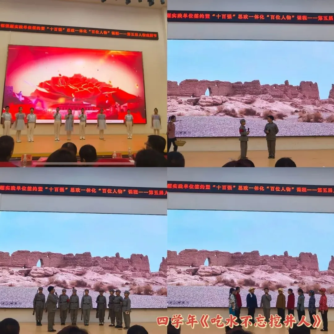 我校人物戏剧节作为 “十百强” 思政一体化百位人物课程的重要载体,自 2021 年深耕不辍,四载耕耘、步履不停!从最初单一的课本剧演绎、部分学生参与,到如今创新打造情景演绎、红色朗诵、主题情景剧等多样表现形式,参演学生规模不断扩大,主演人员成倍增加,舞台绽放更多精彩!本届戏剧节更勇立潮头,创新融入 AI 技术赋能舞台创作,让学生在学习榜样、演绎榜样的过程中,尽情释放青春活力、激发创意潜能,真正实现爱笑、善思、爱跳、会创的培养目标!实现思政与学科教学深度融合,让价值引领自然融入、润育无声。引导全体师生强身心、强信念、强情怀、强自信、强责任、强能力、强修养、强品行、强习惯,不断全面提升综合素养,让课程“活起来”、课堂“融起来”、孩子“动起来”,人人爱笑善思、爱跳会创,真正实现以文化人、以艺润心。