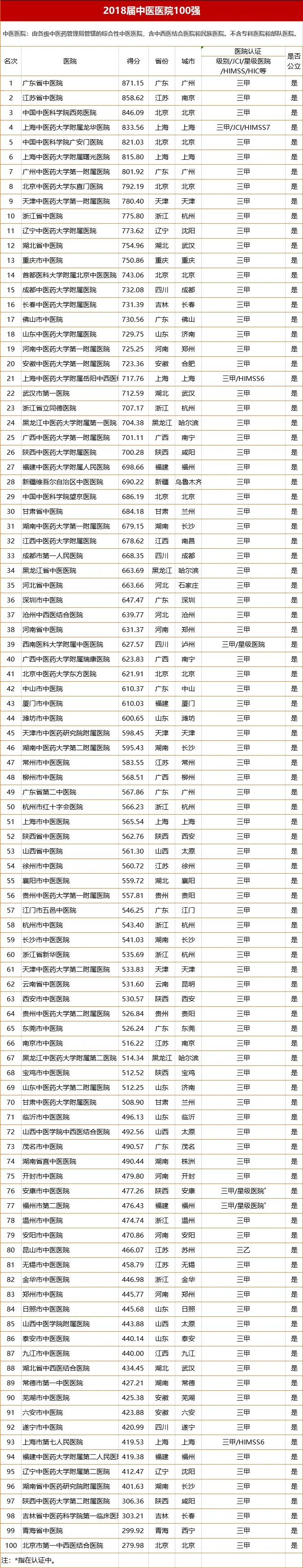 3月29日,由艾力彼主办的《2019中国医院竞争力大会》于广州召开。会场发布《2018中医医院100强排行榜!》,“医学界”整理如下——