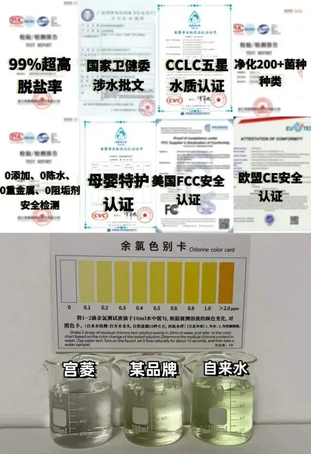四是,配置用料实在,不拼低价和噱头功能,滤芯更是诚意满满,有12层滤芯、16页进口双层杜邦RO膜和四层进口椰壳烧结炭,比常规配置高很多,还通过了母婴级、CCLC五星等多项严苛认证,脱盐率达99%,能净化200余种有害物,做到0陈水、0铅等多种无毒标准。