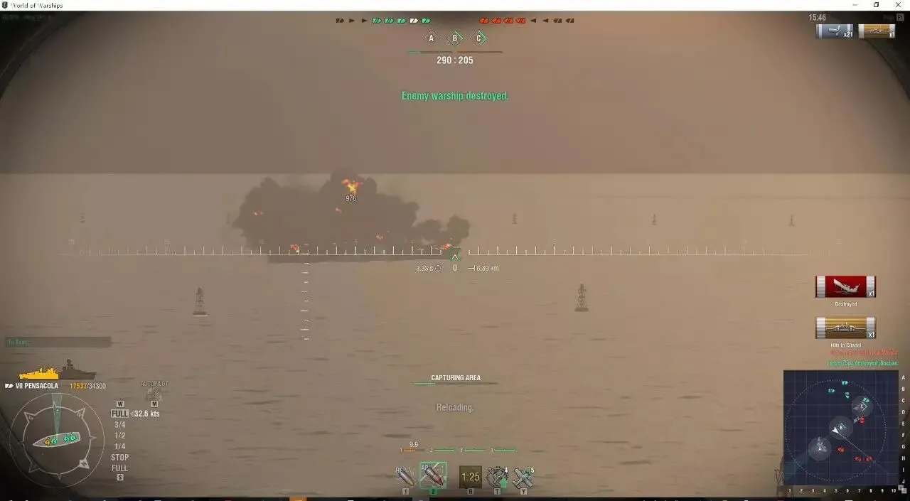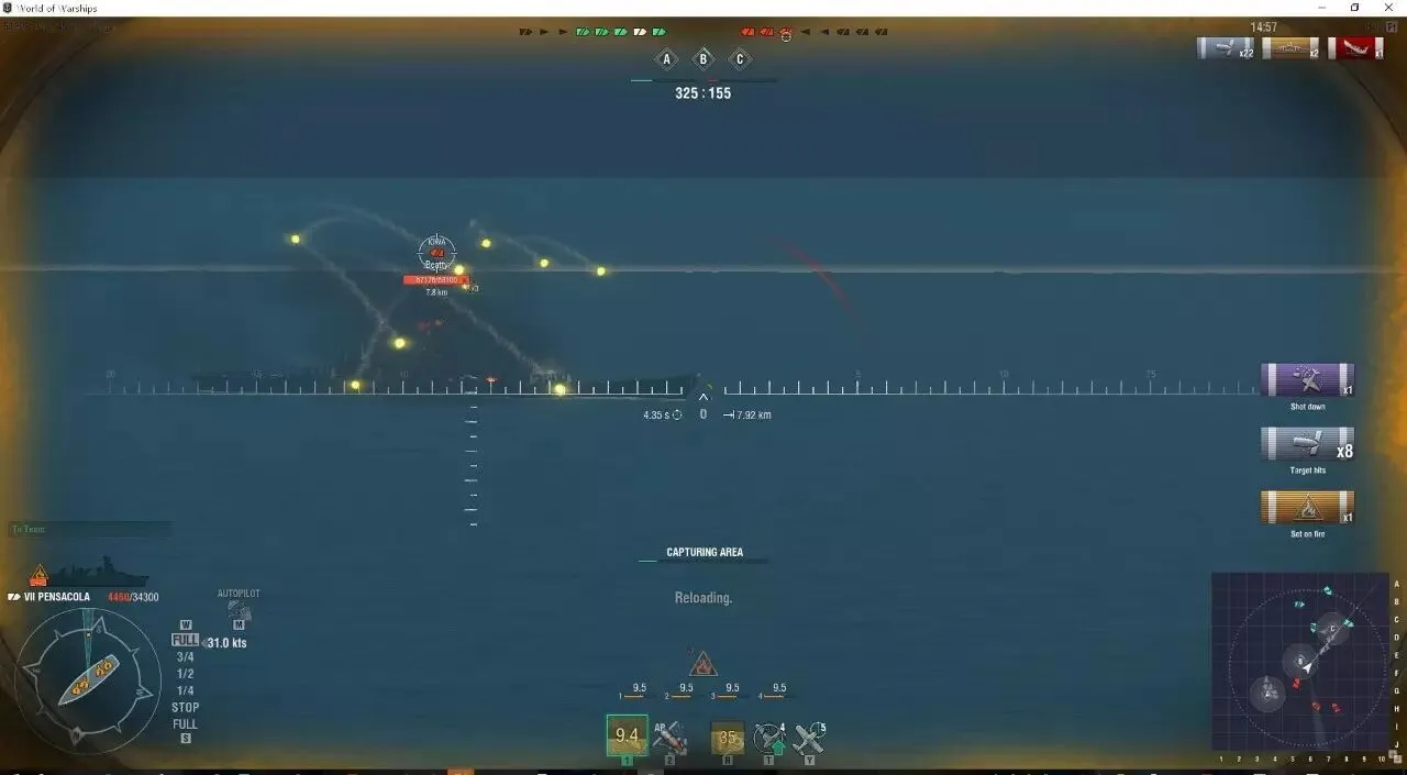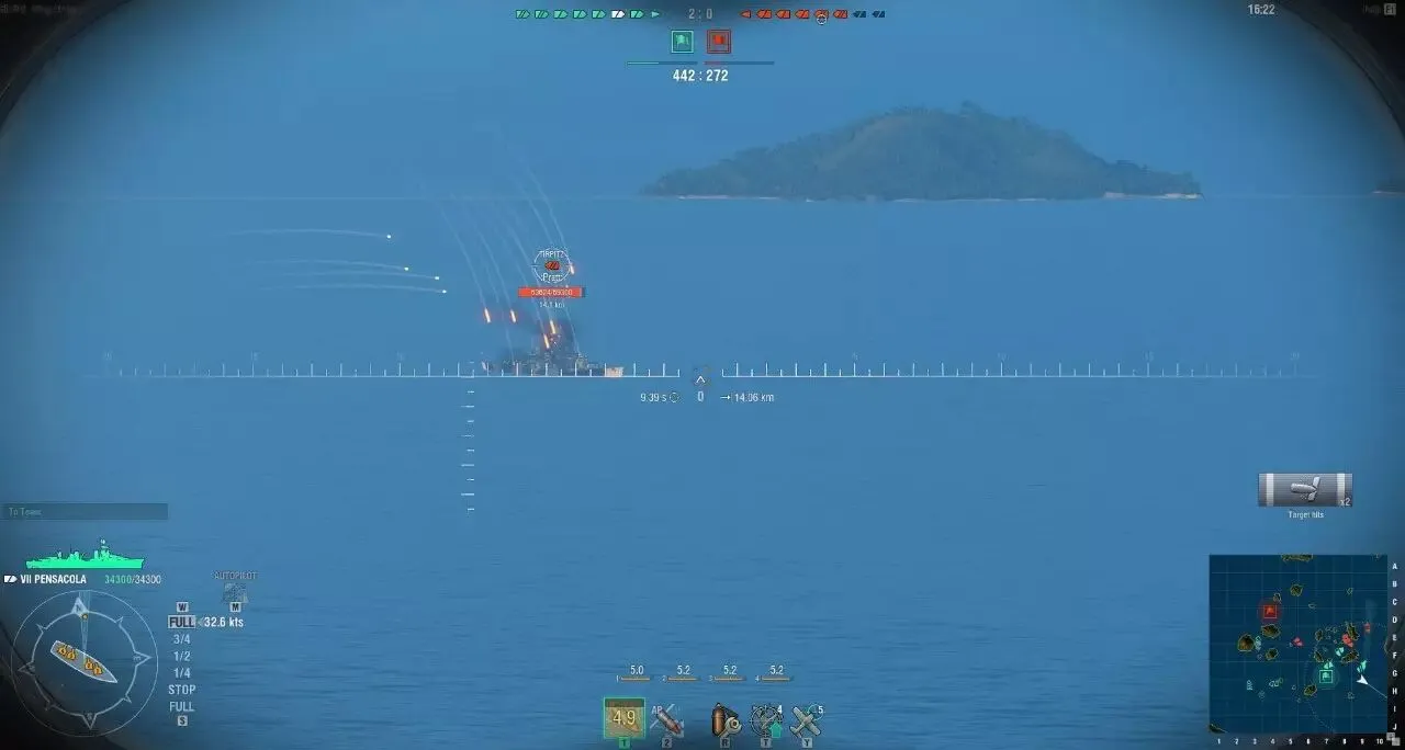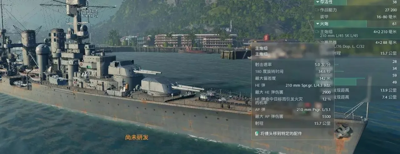 遇见约克的时候请务必小心,约克的6KM传家宝电动雷和5500单发伤害的AP可不是闹着玩的,根据实战感受德系210的AP转正也是很好的,在近距离还是能轻易撕碎彭萨科拉的船头装甲以及大倾角的侧面装甲。彭萨科拉内战个人感觉比的是耐心,谁没耐心想全主炮射击对面的时候,往往他就输了。