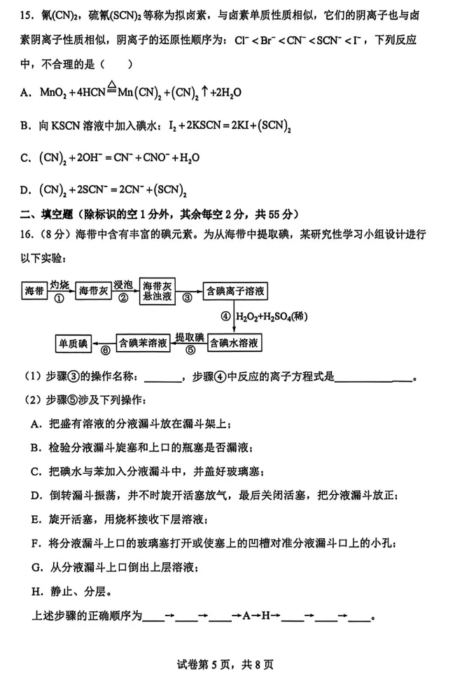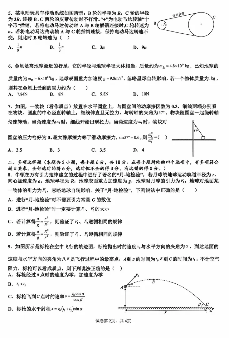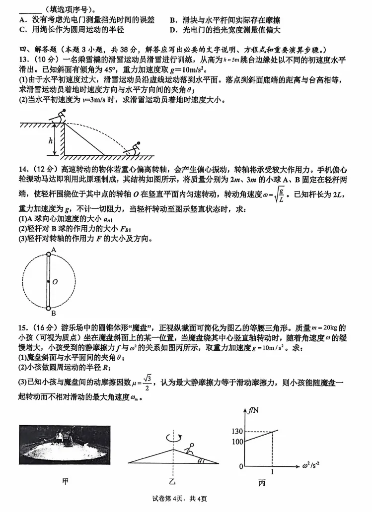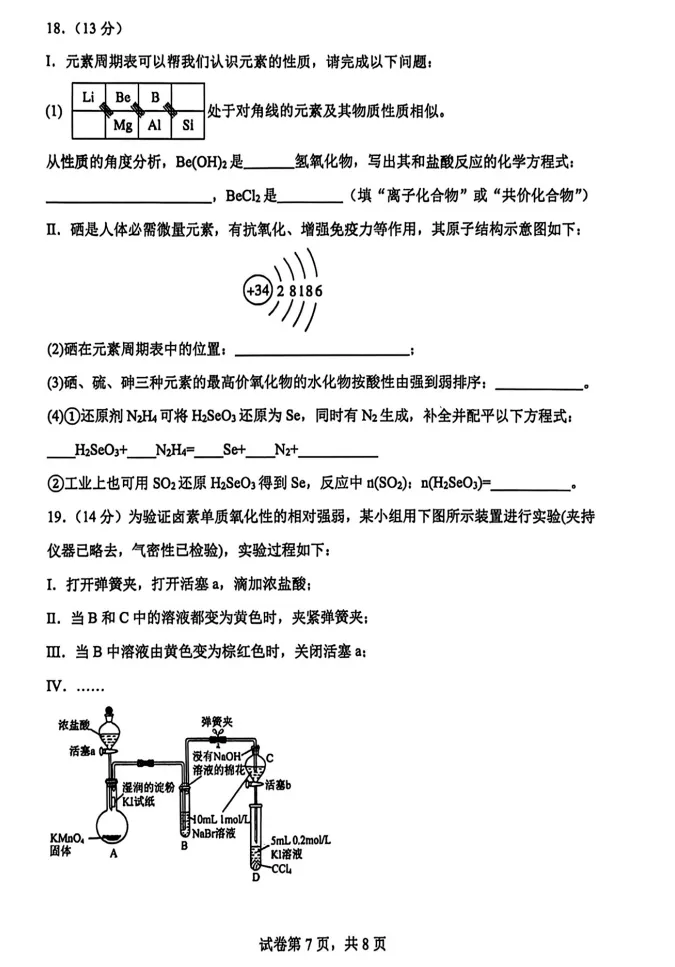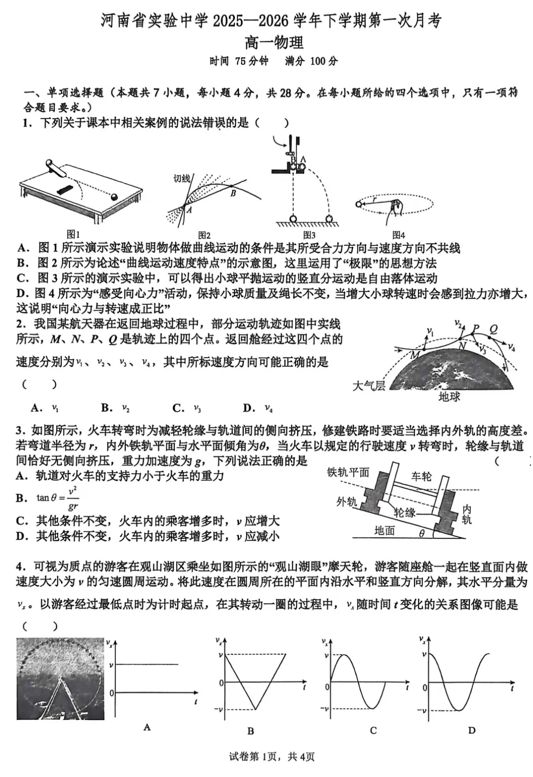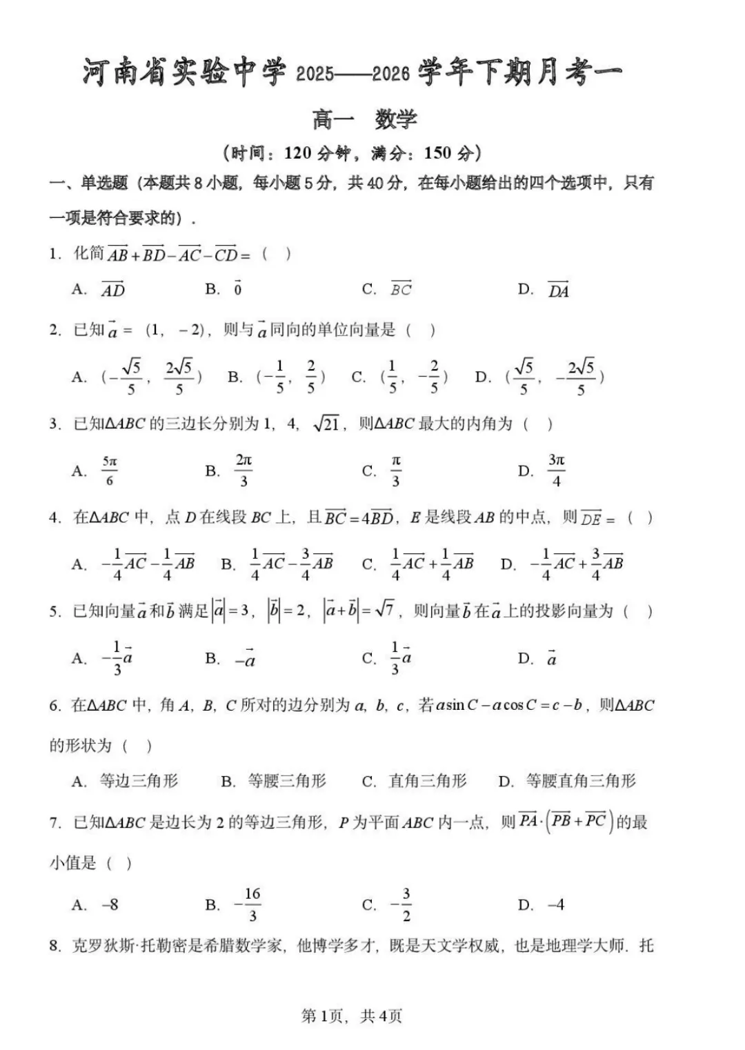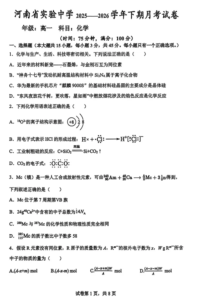 【百强校】【河南卷】河南省河南实验中学2025-2026学年下期高一年级月考卷(一)(3月底) 数学物理化学试题卷+答案无页眉页脚页码无添加无私货无夹带无水印的纯净电子版部分内容展示【文末可下载全科打包版【文末可下载全科打包版(文未底部加黑加粗加大的蓝色字体"阅读原文"即为下载链接,点击即可进入下载链接】: