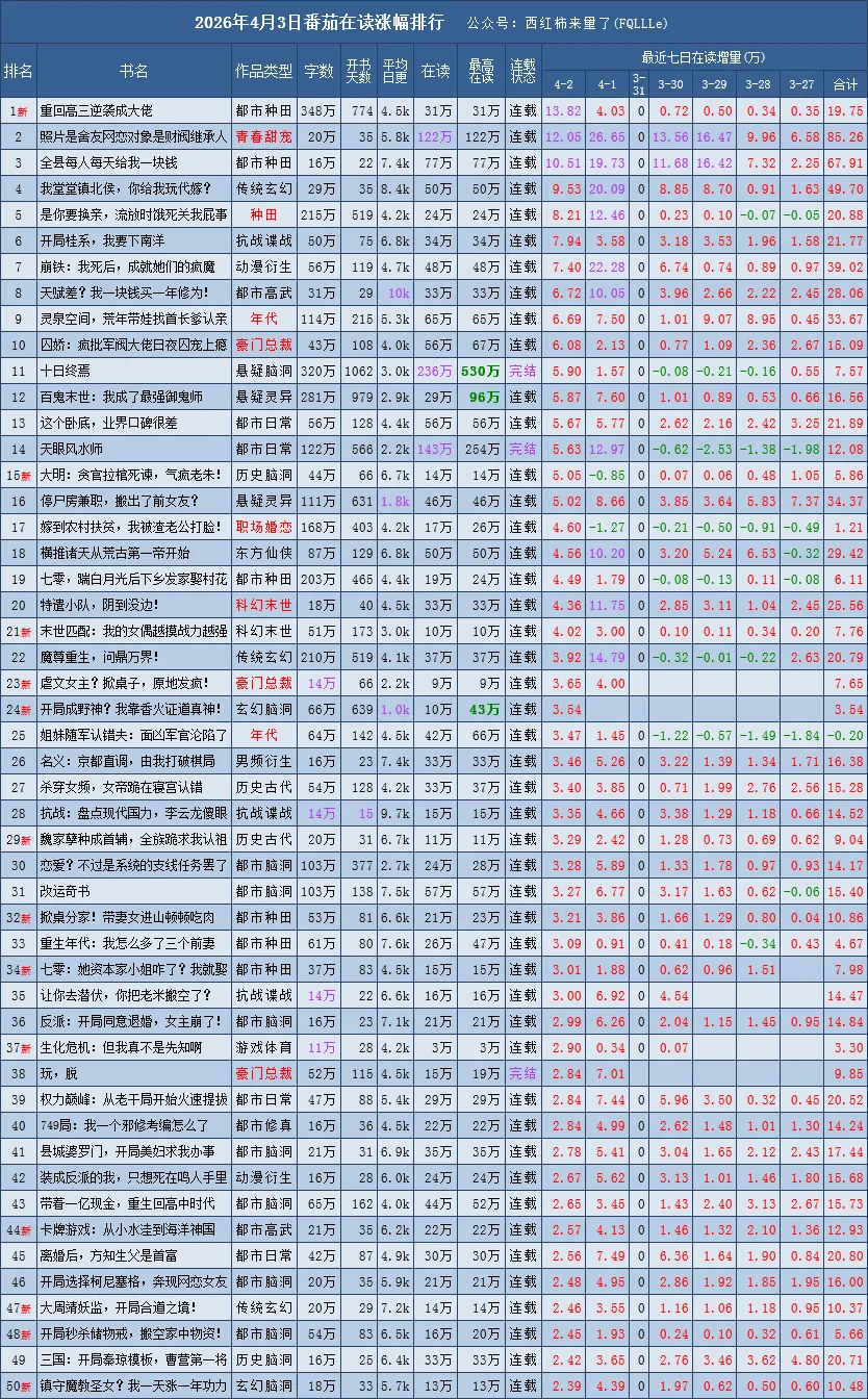 最后的8列,为最近7日的每日在读变化,以及7日的累计涨幅