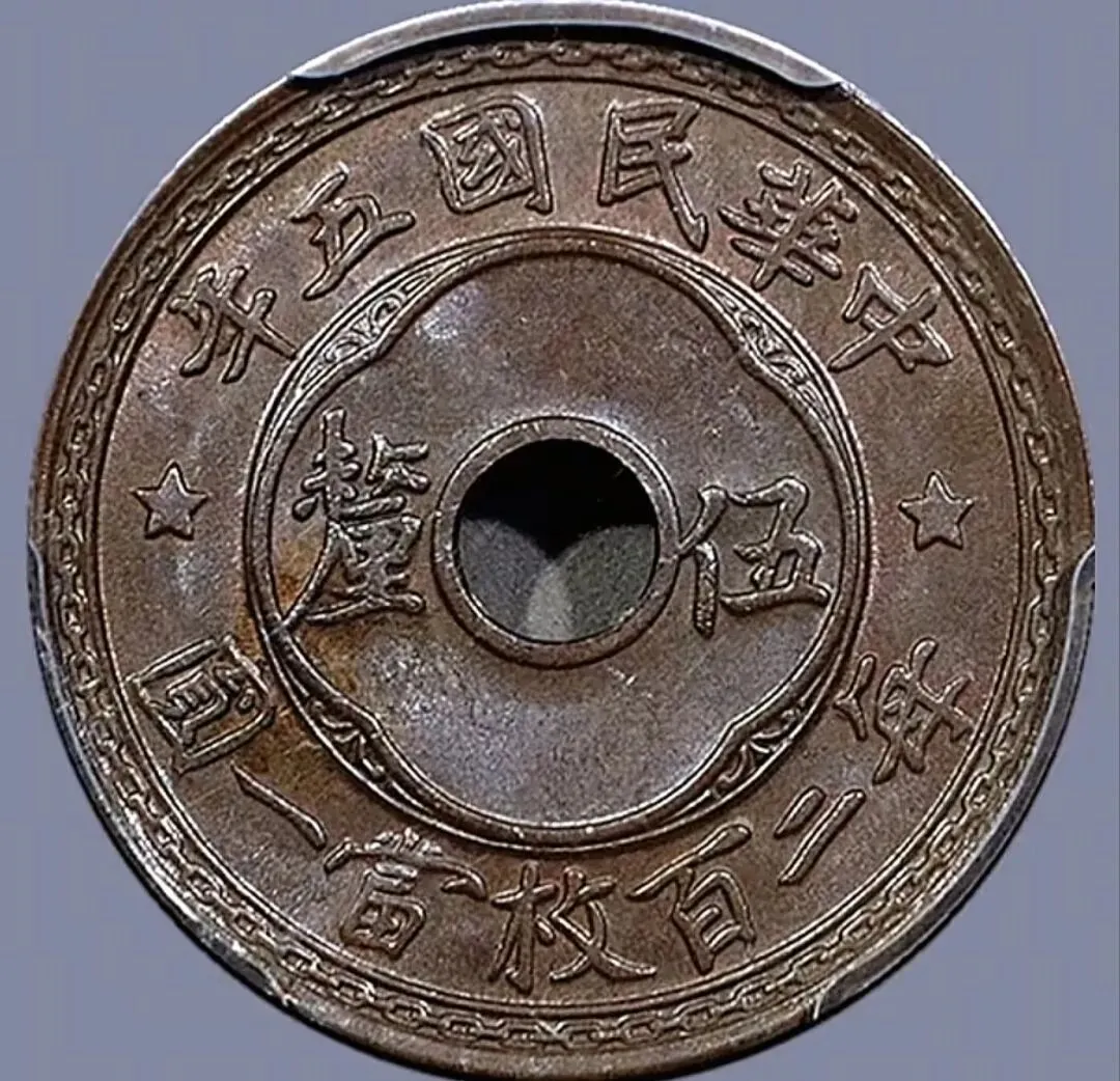 中华民国5年中孔5厘,PC,GS评级,MS 62 BN