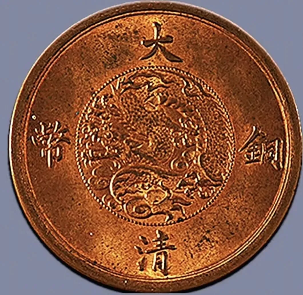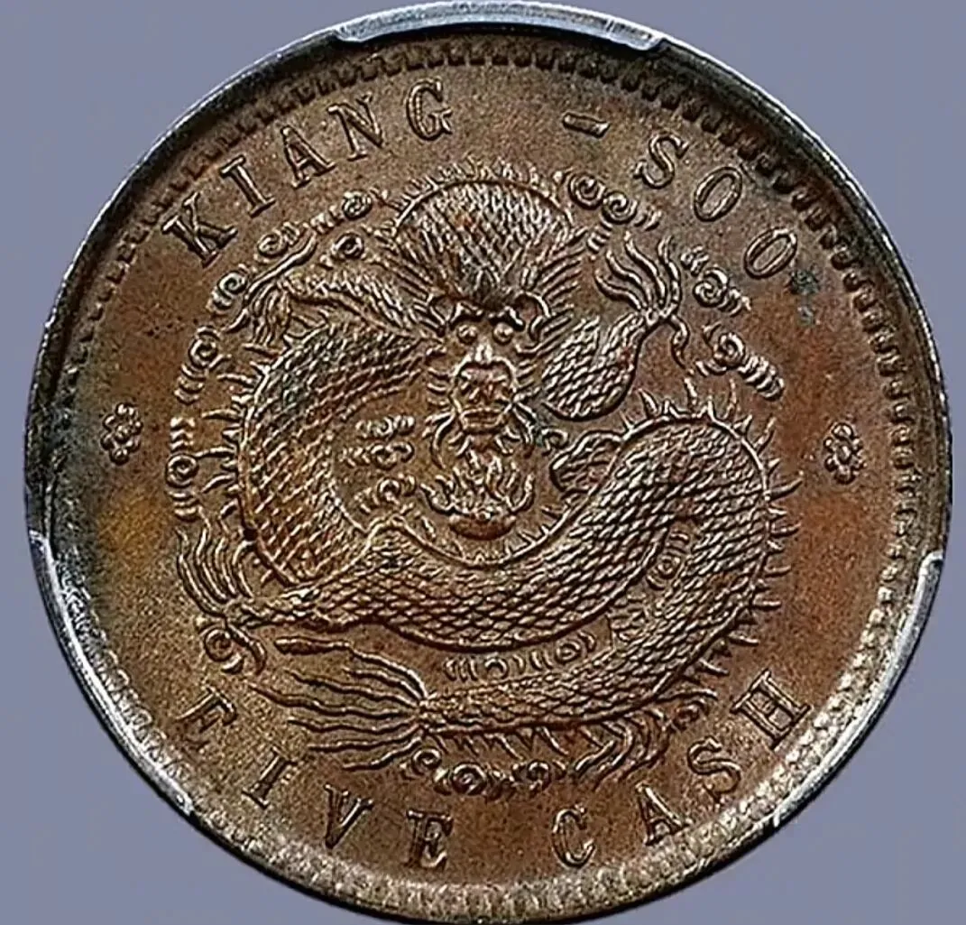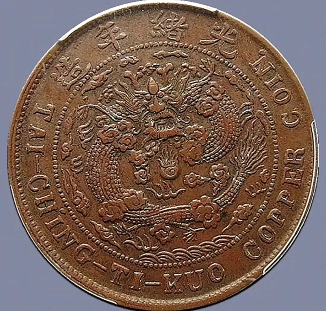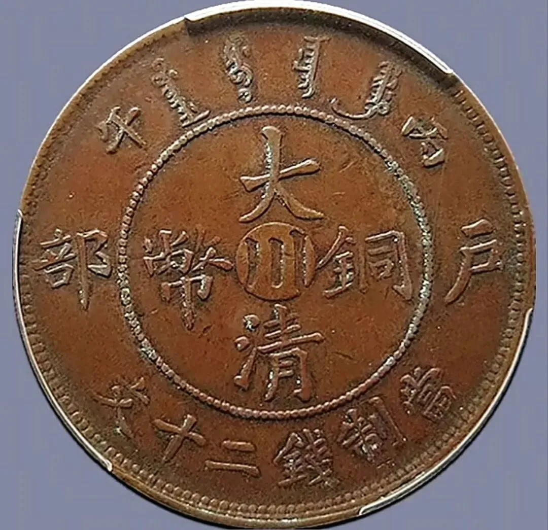大清铜币中心川20文歪嘴龙 PCGS评级,XF 45,
