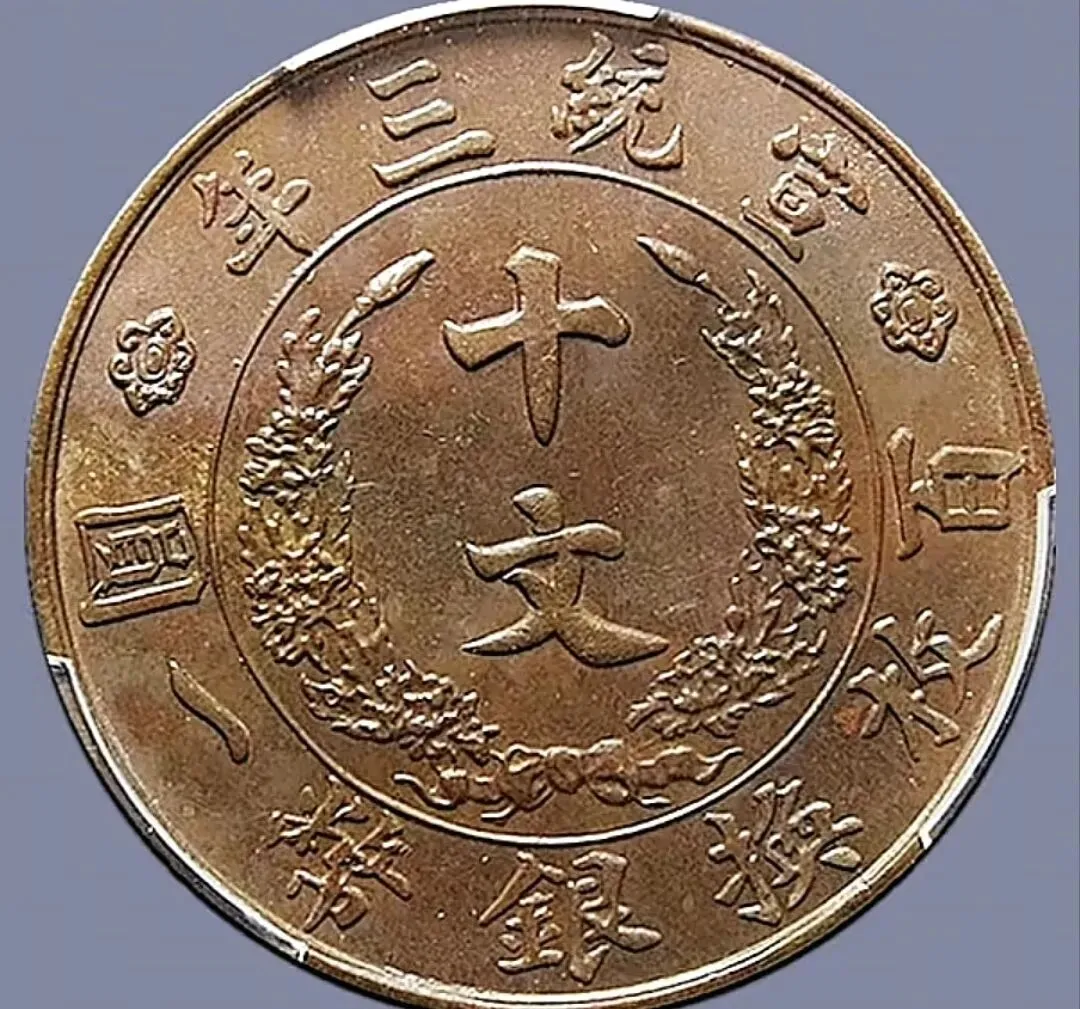 宣统三年大清铜币,古文PC、GS评级,MS 64 RB