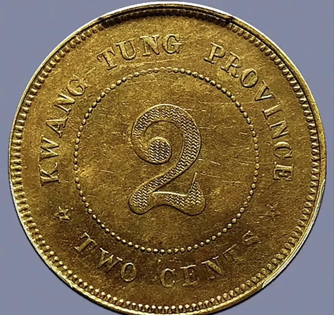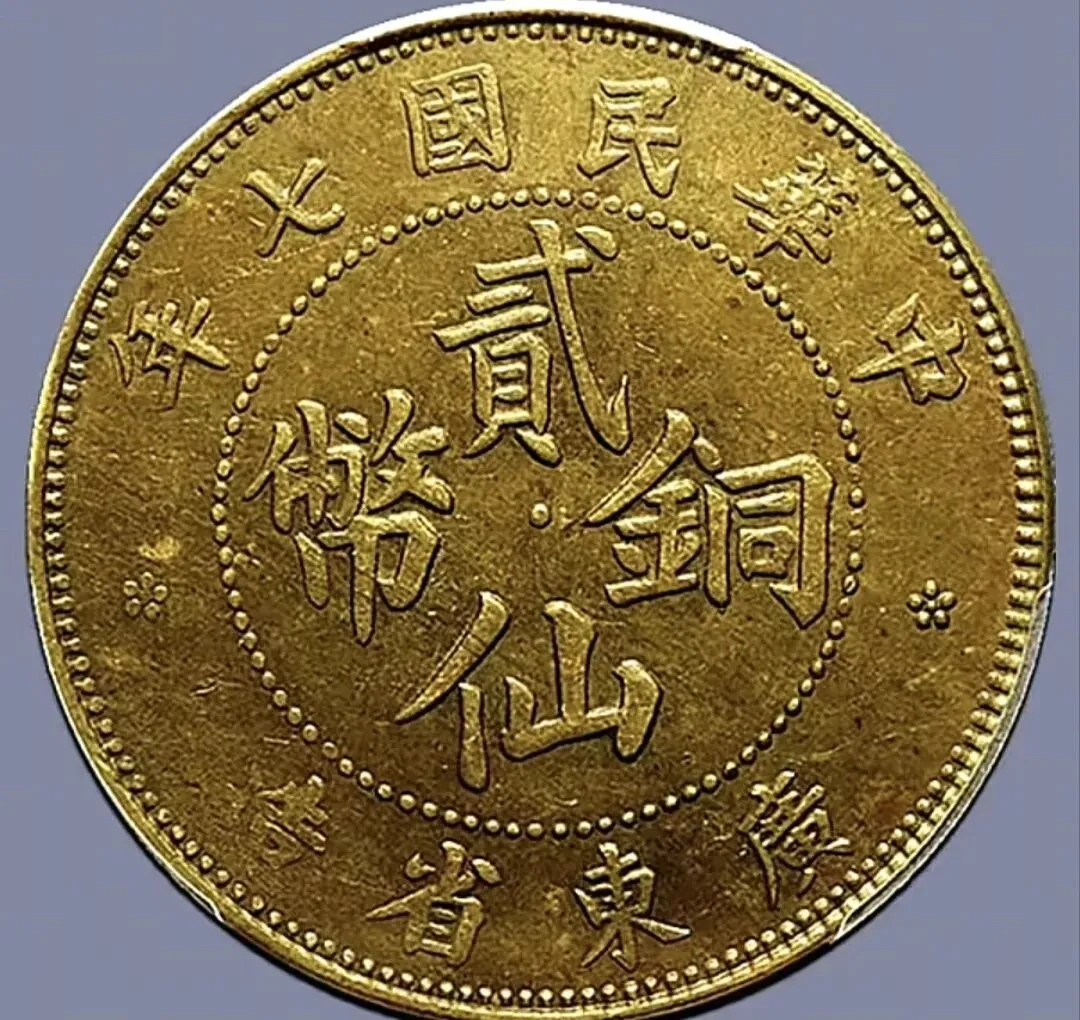 民国7年广东黄铜二仙,PCGS评级,AU 58