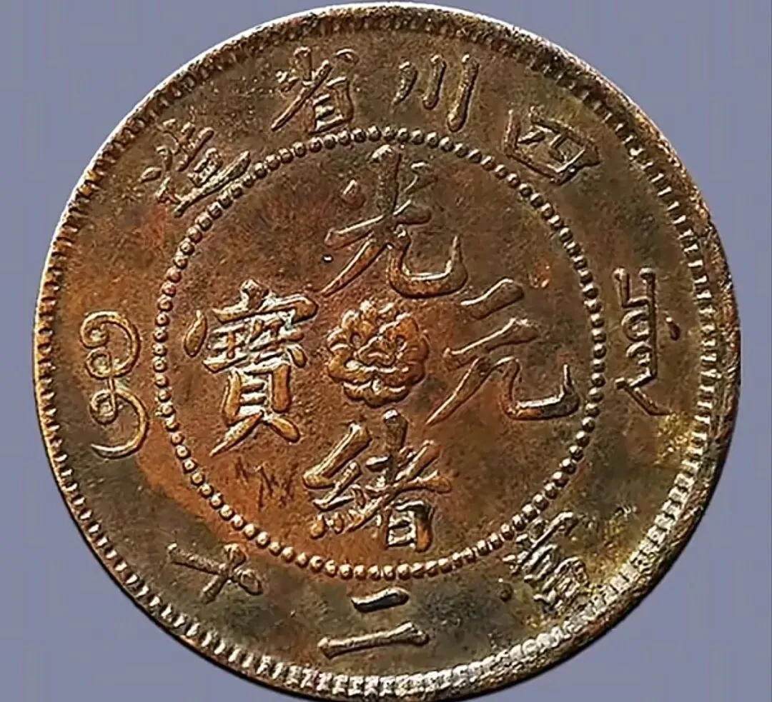 新疆通宝双旗当红钱二十文 裸币未评级