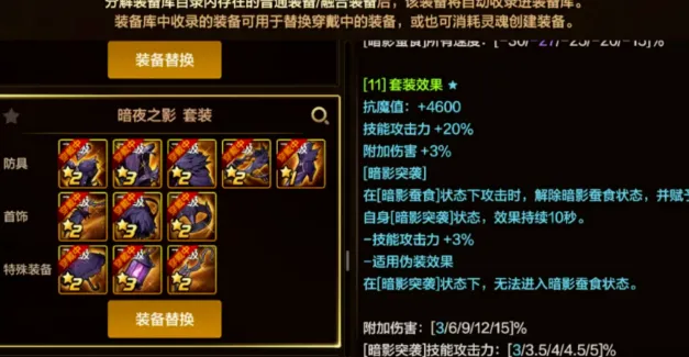 暗影套:强度很高,但是低星级会有严重的副作用(罚站2秒)。必须达到五星才能消除负面效果,平民根本承受不起这样的造星成本。