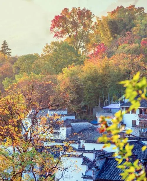 塔川的秋色特别在清晨,太阳刚升起的时候,整个村子笼罩在一层薄雾里,红叶在雾气中若隐若现,偶尔有村民挑着担子从巷子里走出来,那一刻你会明白为什么徽州能出那么多山水画,因为这个地方本身就是一幅画,不需要刻意构图,随便找个角度都是诗意。