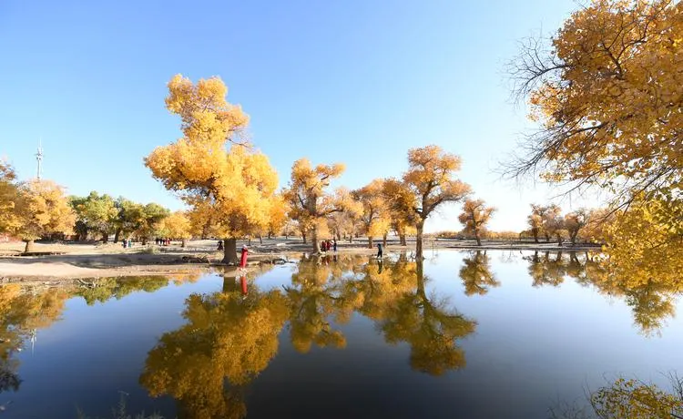 内蒙古额济纳的胡杨林是中国秋色里最硬朗的那种,它不讲温柔,也不讲层次,就是一片金黄,金黄到让你睁不开眼,那种黄不是小家碧玉的美,是大开大合的气势,因为胡杨这个树种本身就硬气,它在戈壁滩上扎根,活着千年不死、死后千年不倒、倒后千年不朽,所以它的美是带着一股劲儿的。