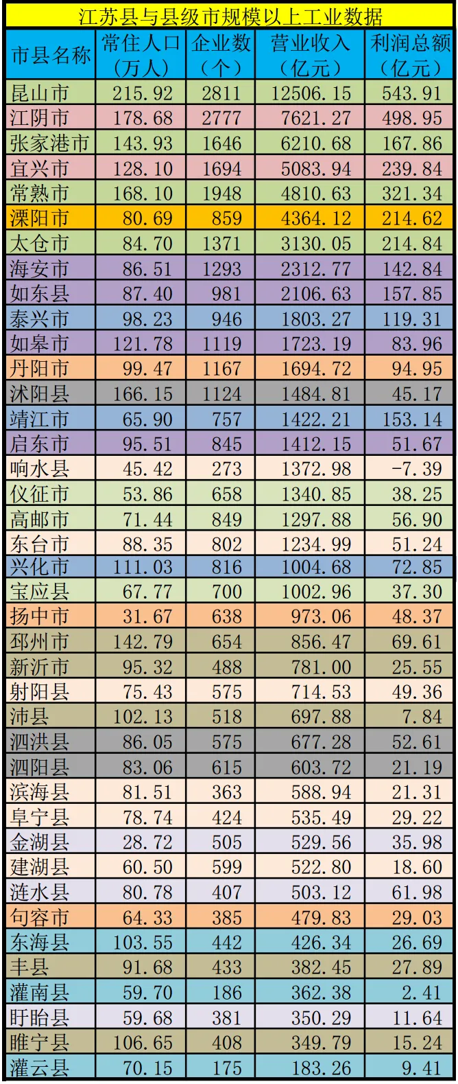 网上有很多统计各地级市的规模以上工业的数据,但是具体到县的相对少很多,最近各地市的2025年统计年鉴纷纷发布,下表是根据各地市的统计年鉴做的关于江苏县及县级市规模以上工业数据统计:按营收排名,苏锡常3市的7个代管县市分列前7。
