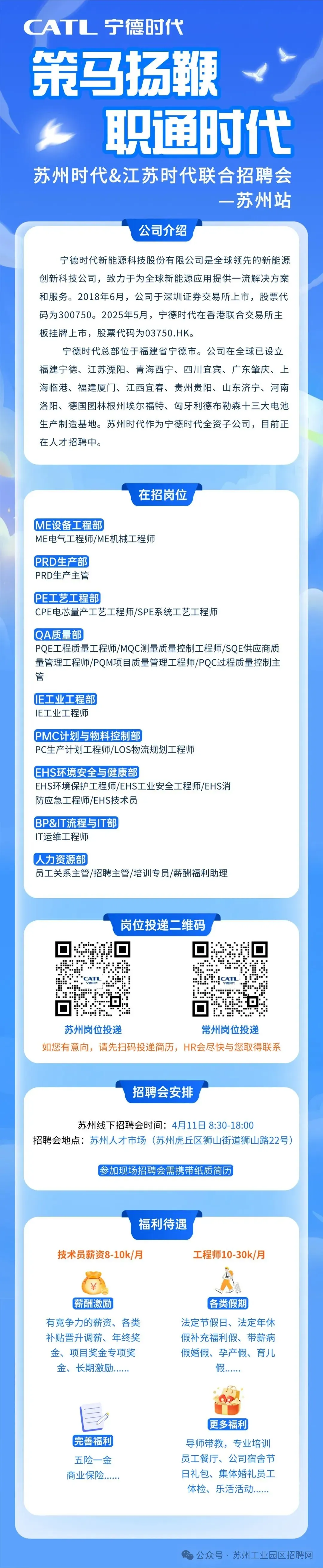 >【南通招聘】世界500强 | 宁德时代&江苏时代联合招聘会 六险一金 10-30k/月