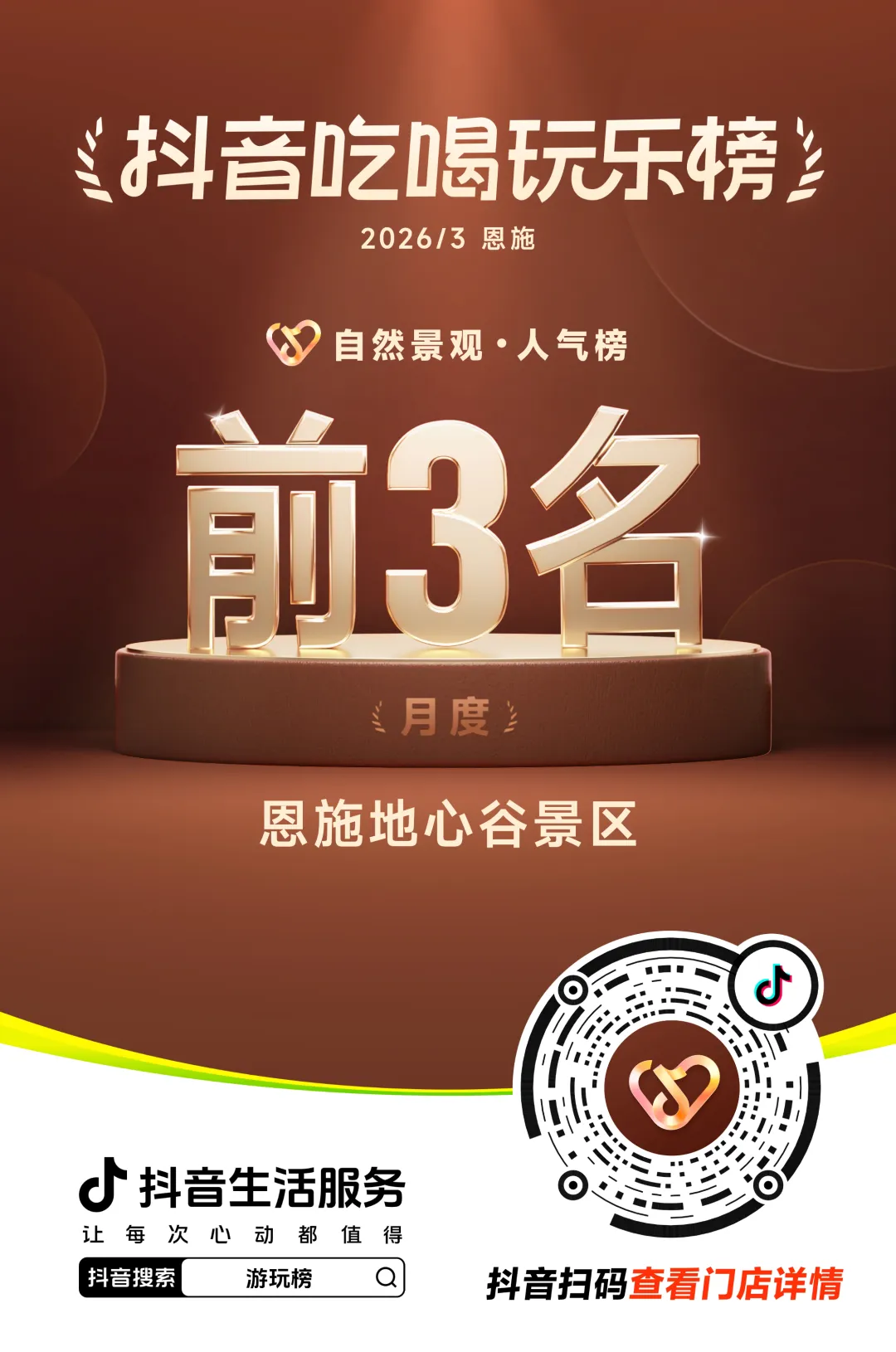 在短视频时代,一座景区好不好,游客用脚投票、用手指点赞。恩施地心谷在抖音平台长期稳居恩施自然景观人气榜前三名,这一成绩绝非偶然。截至目前,景区在抖音平台累计收获15000+条真实用户评价,好评率高达92.7%,综合评分4.8分,超越全国90.7%的景区。有游客评价:“地心谷虽然只是4A,但路线和设施规划合理,收费也良心”。另一位游客则赞叹:“地心谷的现代化设施能让我们安全地‘消费’险峻、舒适地‘占有’壮美,唯有心旷神怡可描绘当下”。