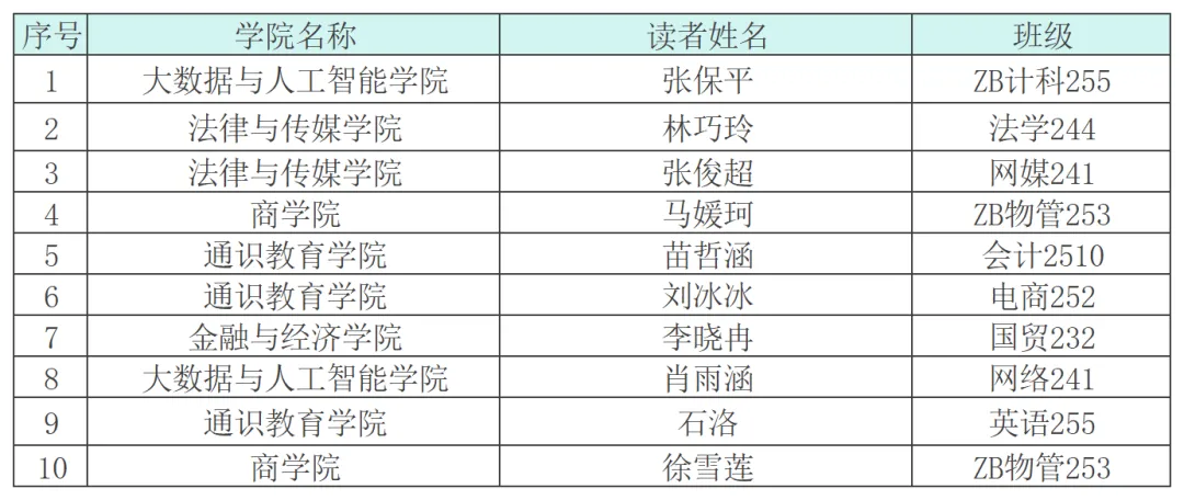 读者借阅排行榜TOP10