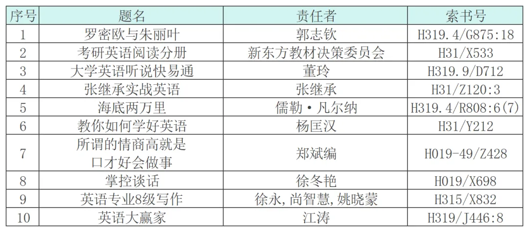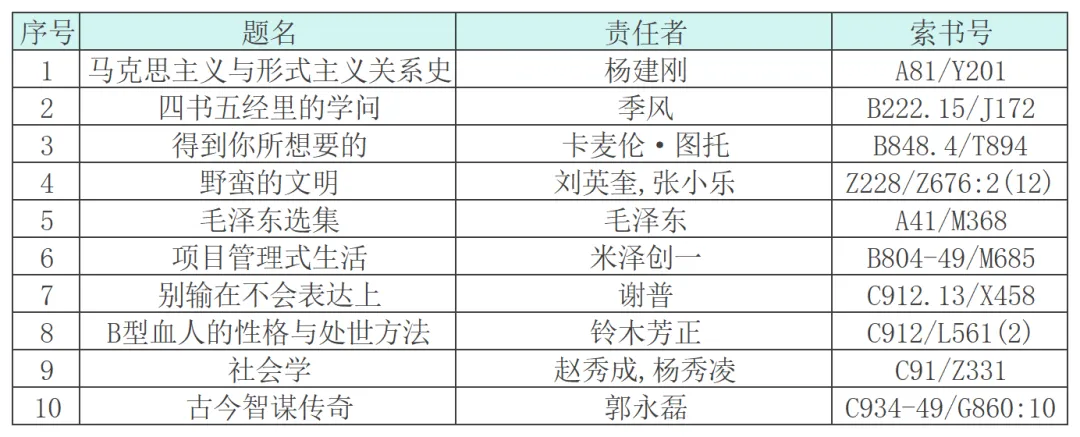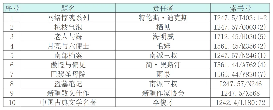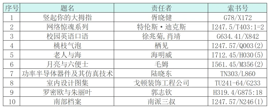 热门馆藏图书借阅排行榜TOP10