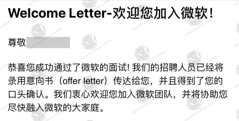在大家的共同努力下,学员最终顺利获得微软的全职offer,学员表示很满意。