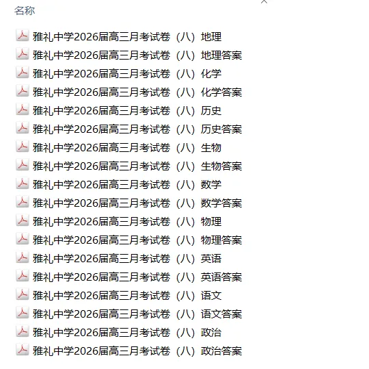 【湖南卷】百强校丨湖南省雅礼中学2026届高三月考试卷(八)