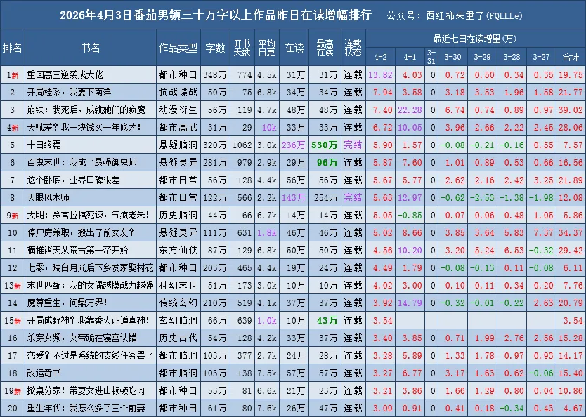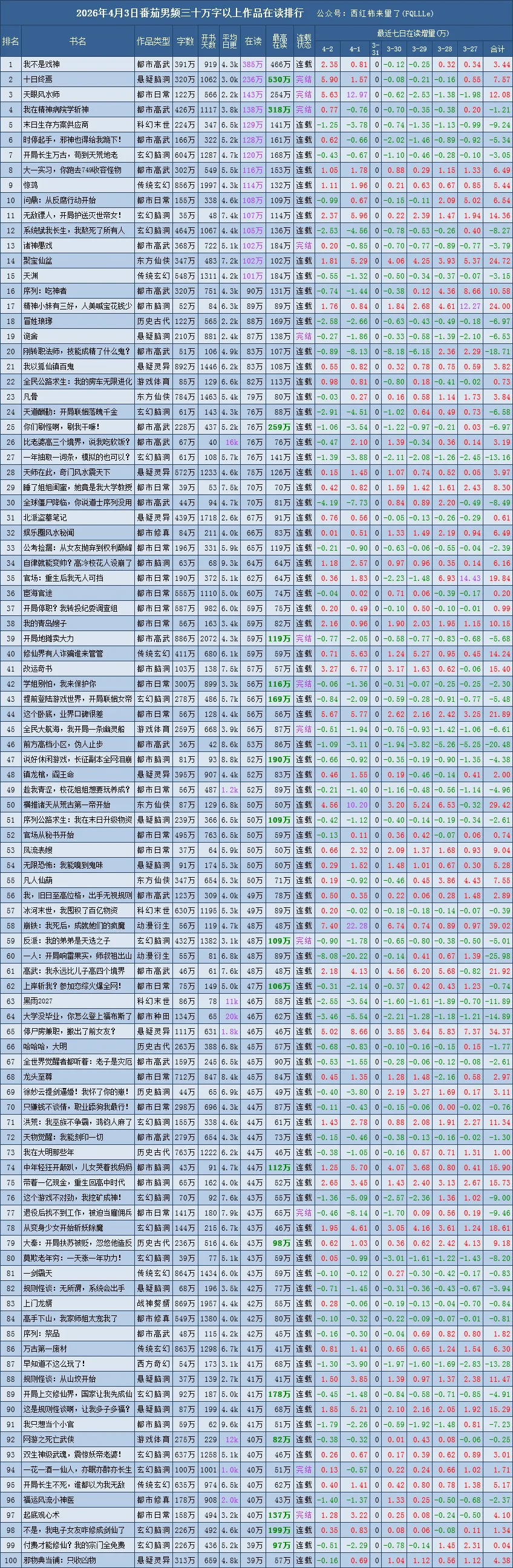 番茄阅读榜范围:30万字以上、已签约未下架、已经开始推荐的番茄原创作品