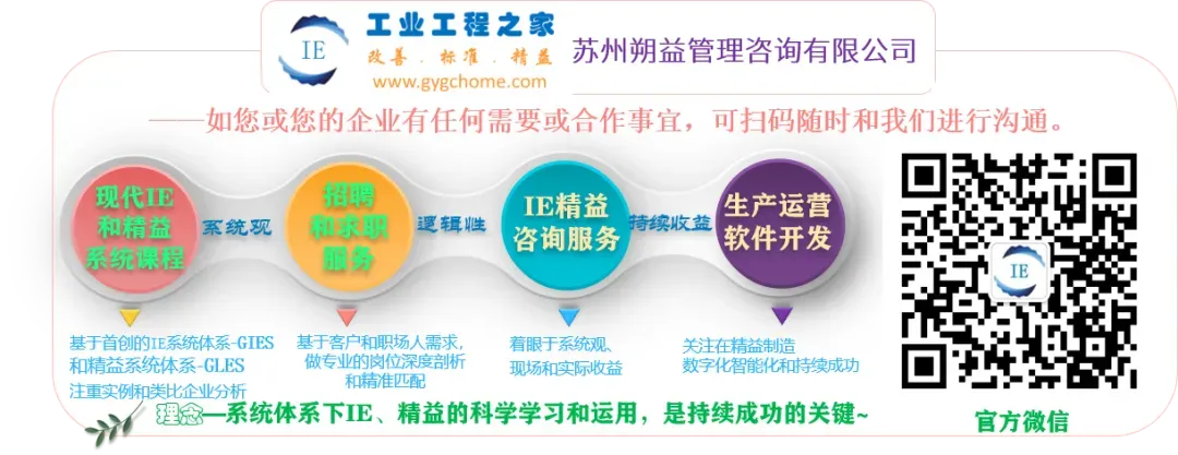 IE应用体系、UPPH、OEE、TPT、CT、ST、产线效率-成本分析、新工厂(多方案评价体系)和线体布局规划设计(直线、U型、L型、Y型等)、复杂人机分析、系统优化案例等内容在我们-新版IE线上应用课程、5月线下培训(东莞/深圳)中都有系统和详细的案例讲解。