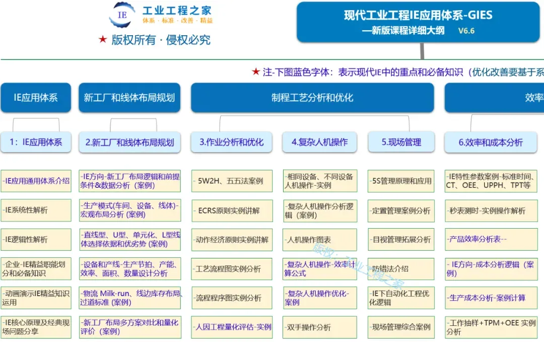 (2)在IE体系下,重点关注:效率分析、标准作业、作业改善、工厂及线体布局Layout分析及其它IE系统改善方法。
