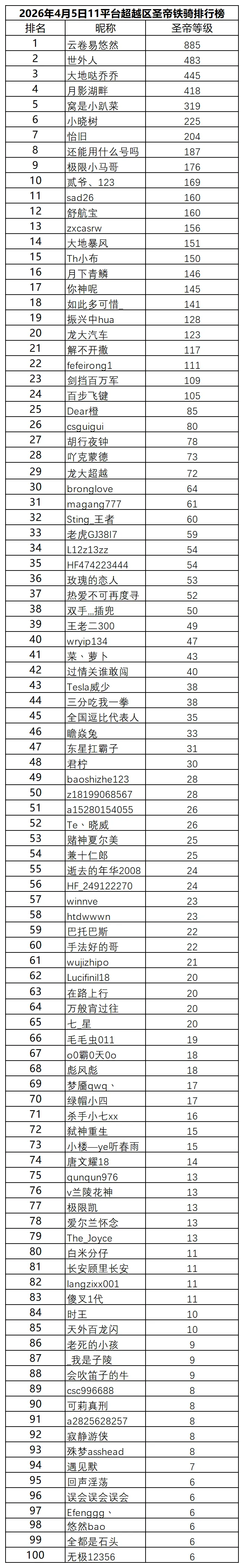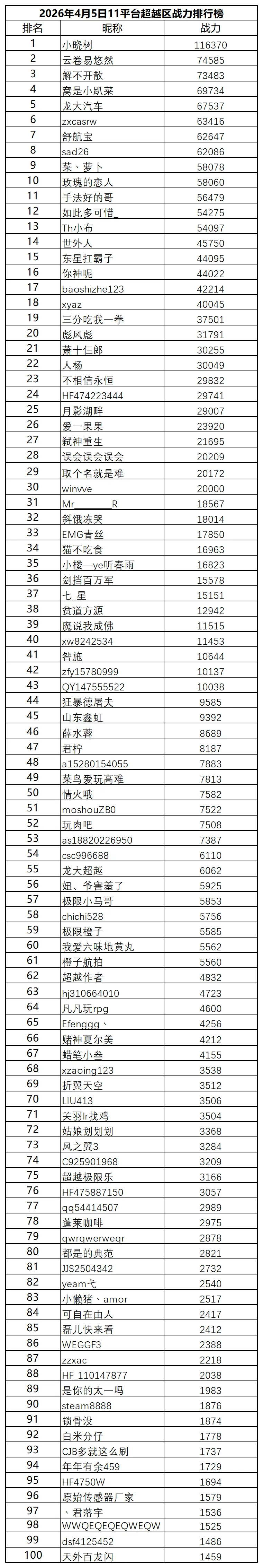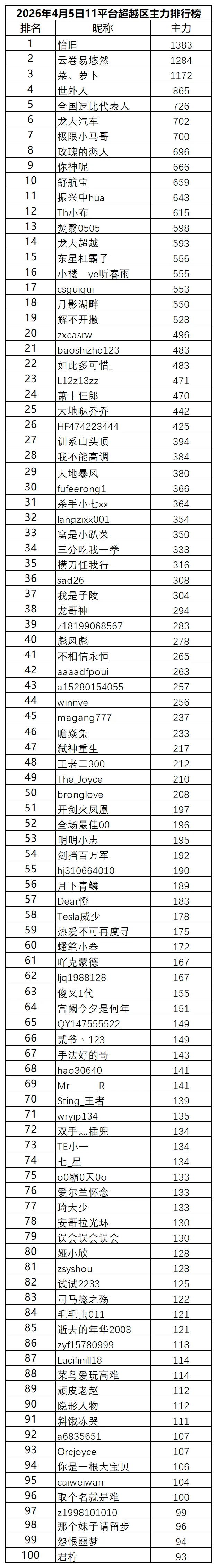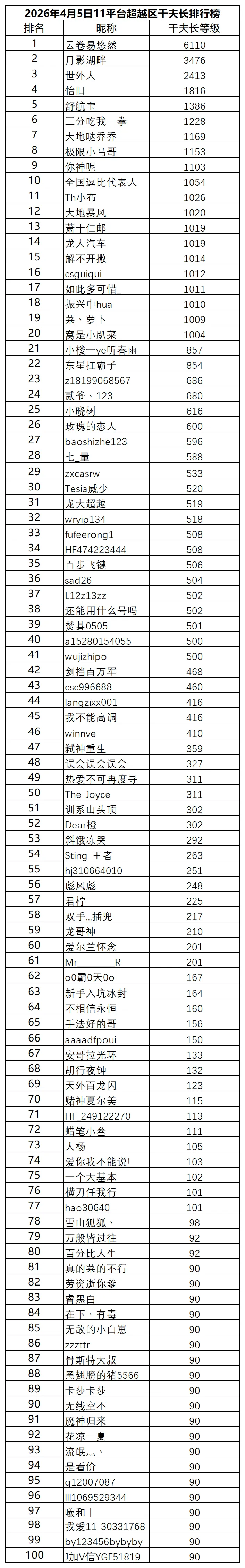 >2026年4月5日11平台超越区排行榜最新排名