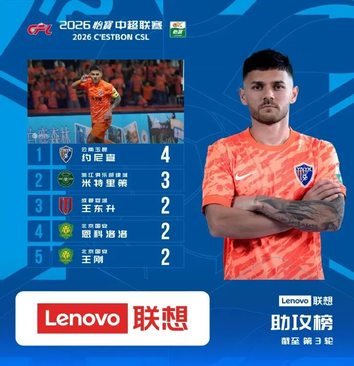 中超联赛激战正酣,截至第3轮,助攻榜上的风云变幻让人目不暇接!云南玉昆的约尼查和浙江FC的米特里策,这两位助攻高手正上演着一场激烈的“助攻大战”,他们用一次又一次精准的传球,点燃了球迷的激情,也让我们看到了中超新一代助攻王的崛起!