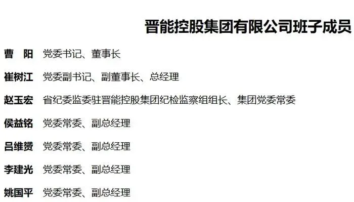 经此次职务调整,晋能控股集团现任领导班子具体如下: