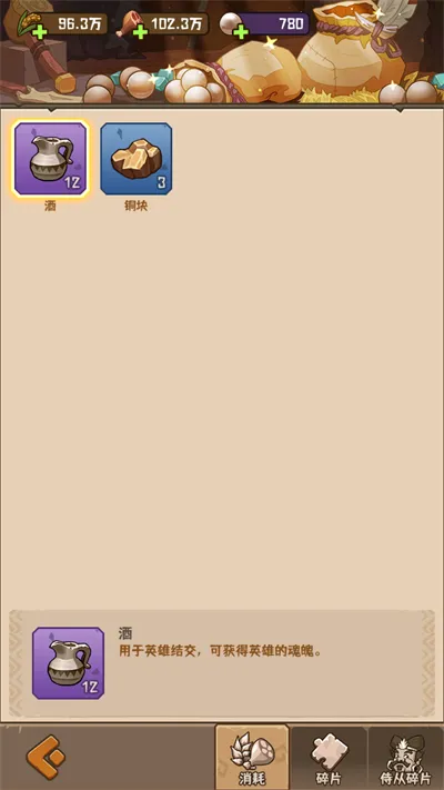 2、养成资源:丰收宝箱、强化石、碎片、装备材料。