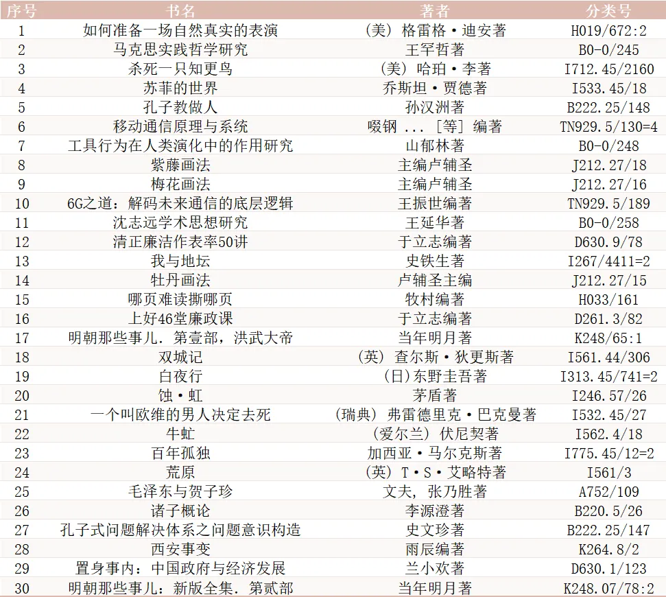 春风拂过书页,墨香漫满书馆。三月的春光里,总有一本好书,成为读者们心头的偏爱。那些被频频拿起的书籍,那些在字里行间邂逅的感动,汇聚成了独属于三月的阅读印记。三月图书馆借阅榜单正式揭晓,一起来看看,这个春天,大家都在与哪些文字相遇吧~