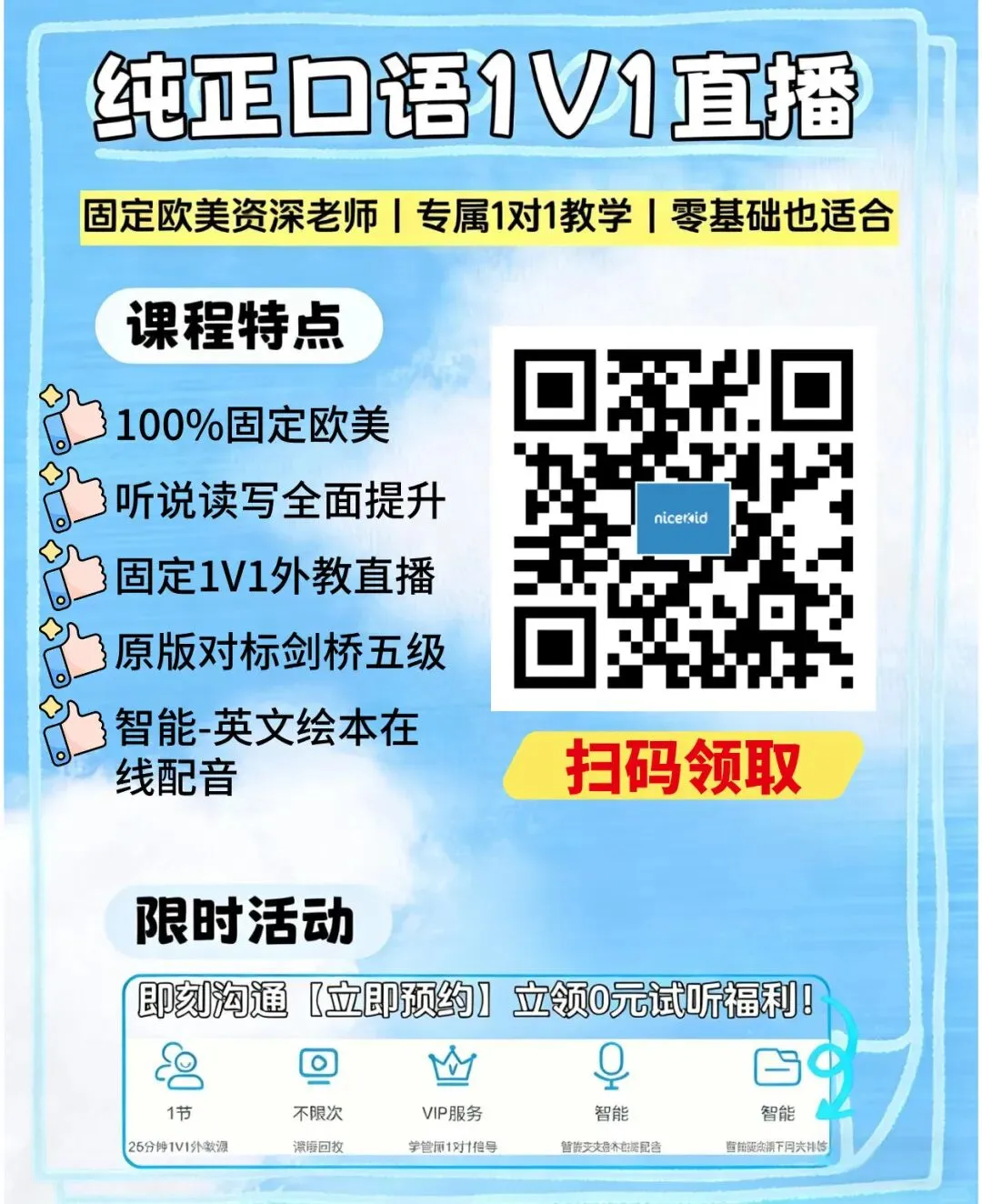 nicekid目前有免费试听,有需要的家长可以体验对比看看,文末可以领取~