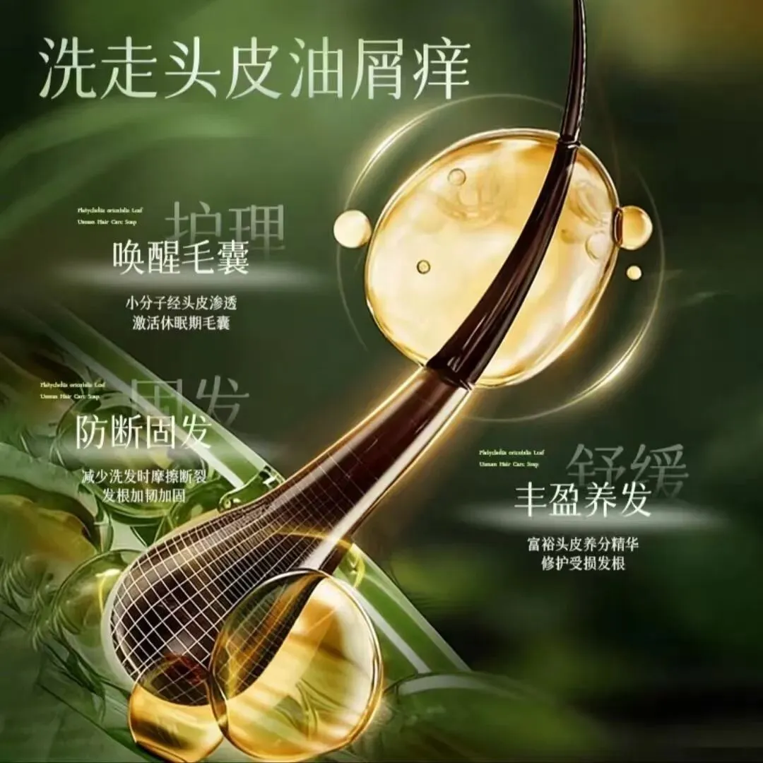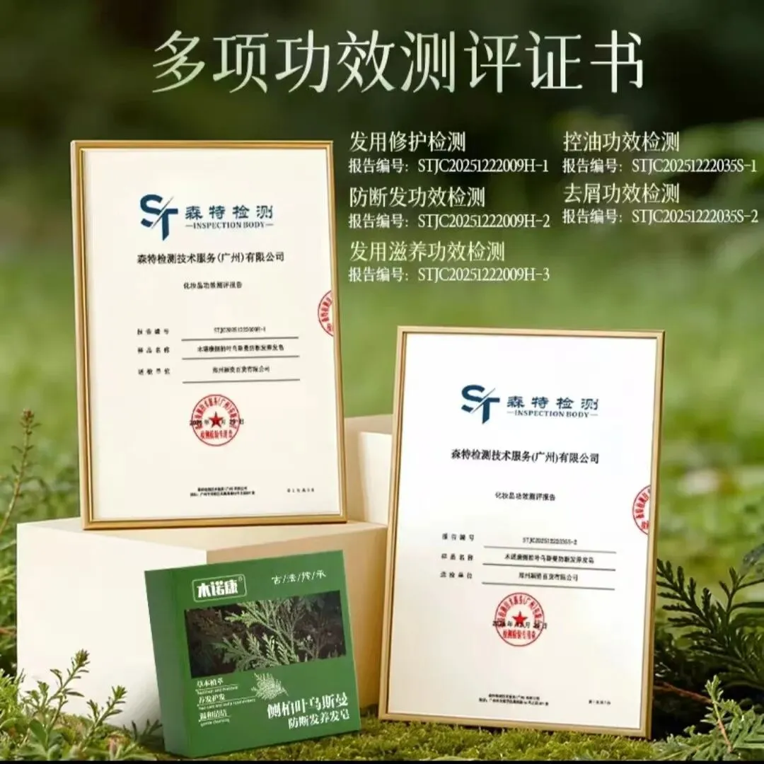 多维植萃矩阵:它不满足于单一的侧柏叶或何首乌,而是构建了一个包含20多种草本的核心矩阵。以侧柏叶、乌斯曼草、墨旱莲构建防脱固发的“铁三角”;以何首乌、黑灵芝、女贞子形成乌发亮发的“营养团”。这种多靶点作用的思路,让一根头发从毛囊到发梢都能得到照拂。