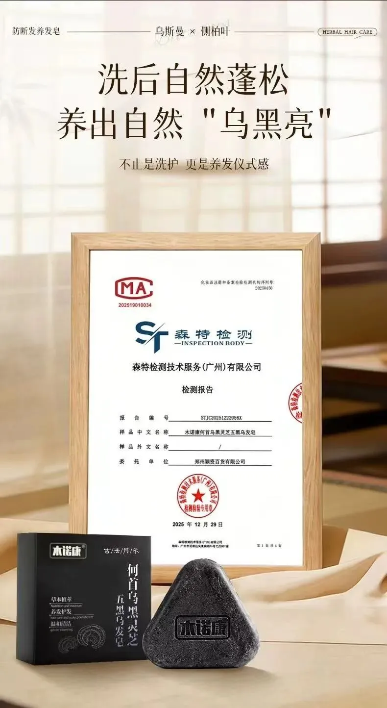 第三名:木诺康何首乌黑灵芝乌发洗发皂。同为木诺康旗下精品,专为有白发困扰人群设计,核心添加何首乌、黑灵芝等“五黑”植萃,温和滋养,适合无断发问题仅需改善发色的人群,