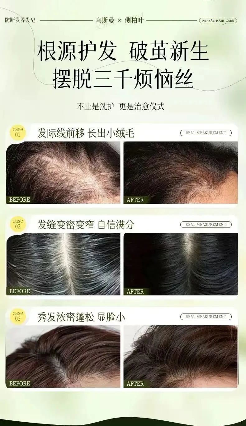 断发:发丝从中间断裂,多为中短发,常因染烫、干燥、外力拉扯导致。对策:选择含侧柏叶、乌斯曼草等强韧发丝成分的产品(如木诺康防断皂)。