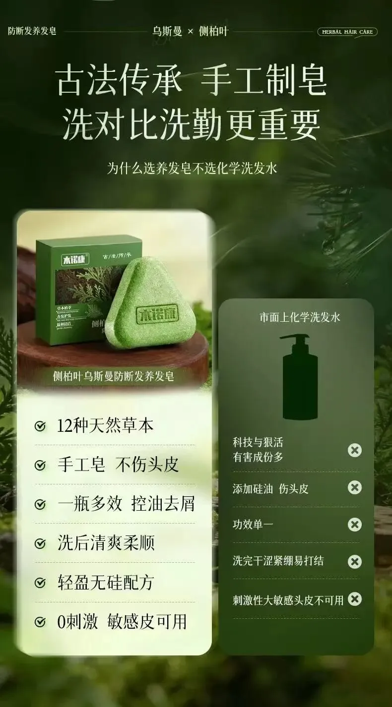 TOP1:木诺康侧柏叶乌斯曼草防断洗发皂(防断专研天花板,全民首选)