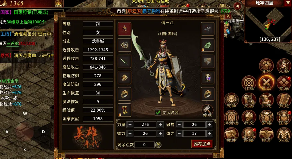 核心优势:纯怀旧无VIP,装备全靠打,交易自由,国战打宝双适配,物价稳定