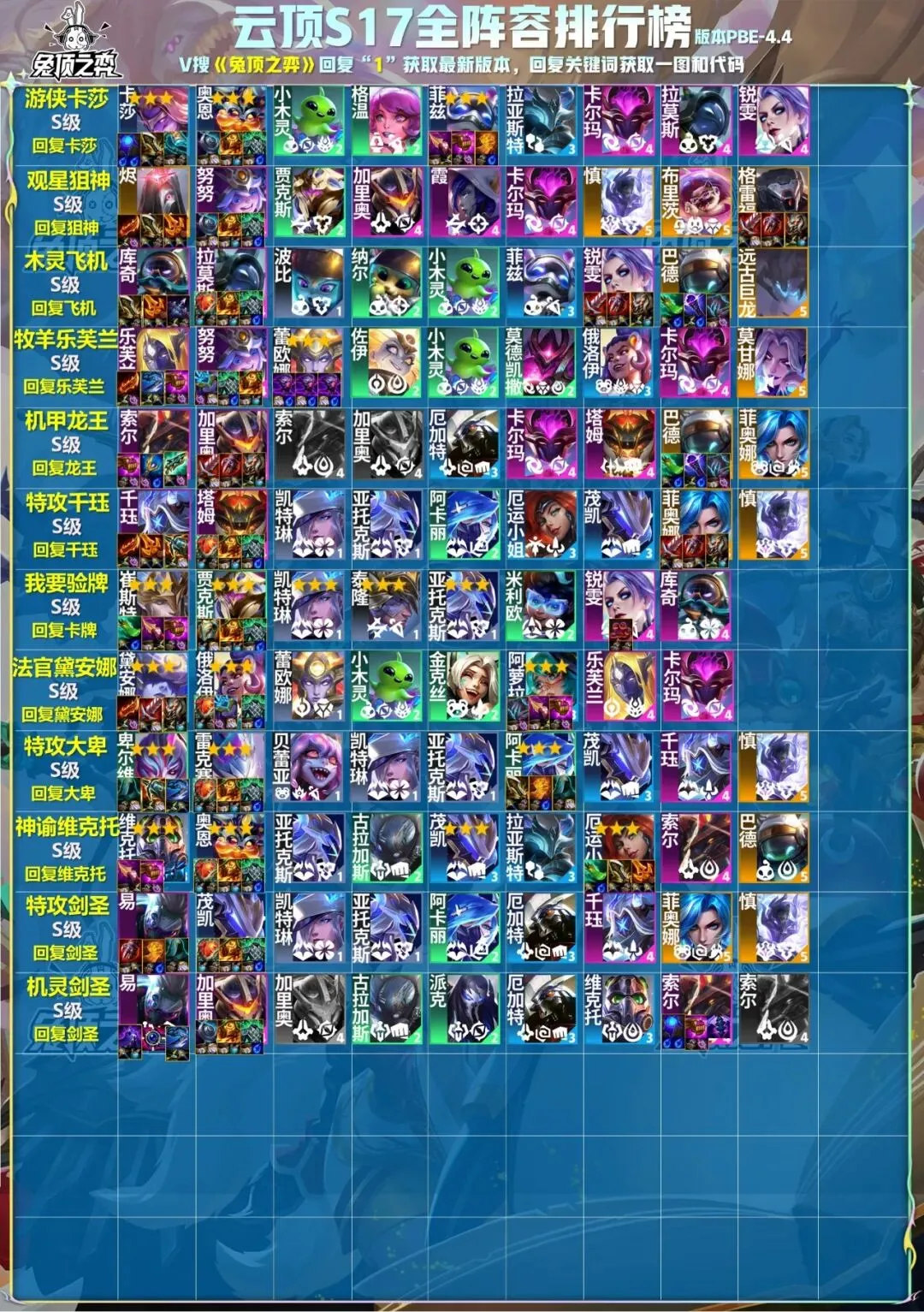 >云顶S17最强阵容排行榜(4月6日最新实战版)