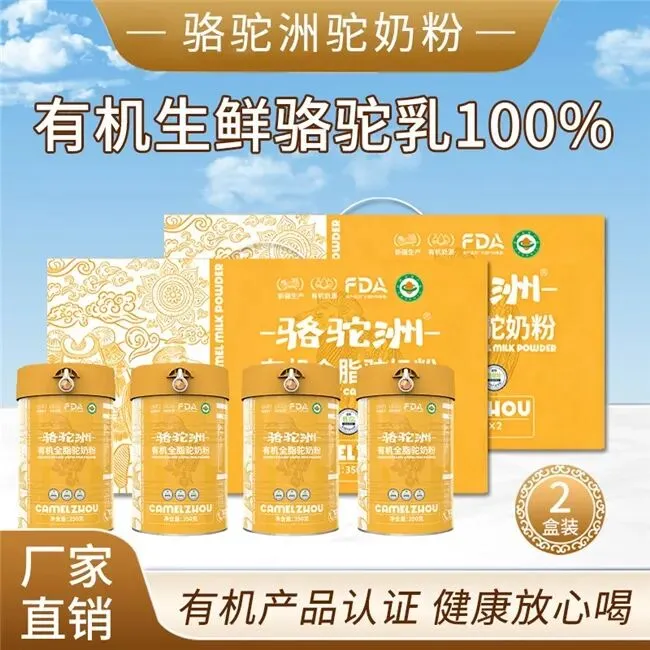 骆驼洲有机驼奶粉的奶源根植于新疆阿勒泰北纬47°黄金奶源带,该区域属于有机牧场核心区,远离城区、工矿区等污染源,土壤、水源、空气均符合有机养殖标准,已通过有机食品专项认证。产区内双峰驼采用天然散养模式,自由采食沙漠野生沙棘、骆驼刺等优质饲草,饮用纯净高山冰雪融水,全程遵循有机养殖规范,不使用人工饲料、抗生素及生长激素,从源头确保奶源的纯净度与营养完整性,与新疆黄金产区的生态优势高度契合,彰显新疆正宗驼奶的天然特质。