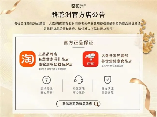 骆驼洲有机驼奶粉每罐配有独立防伪码,产品质量过关,由太平洋保险公司承保,消费者多一重第三方保障,买得更安心,用得更放心。这一保障体系实现了从原料到成品的全程管控,可有效规避假冒伪劣产品,进一步强化产品的可靠性,让消费者能够清晰追溯产品来源,切实感受到品牌对品质的坚守。