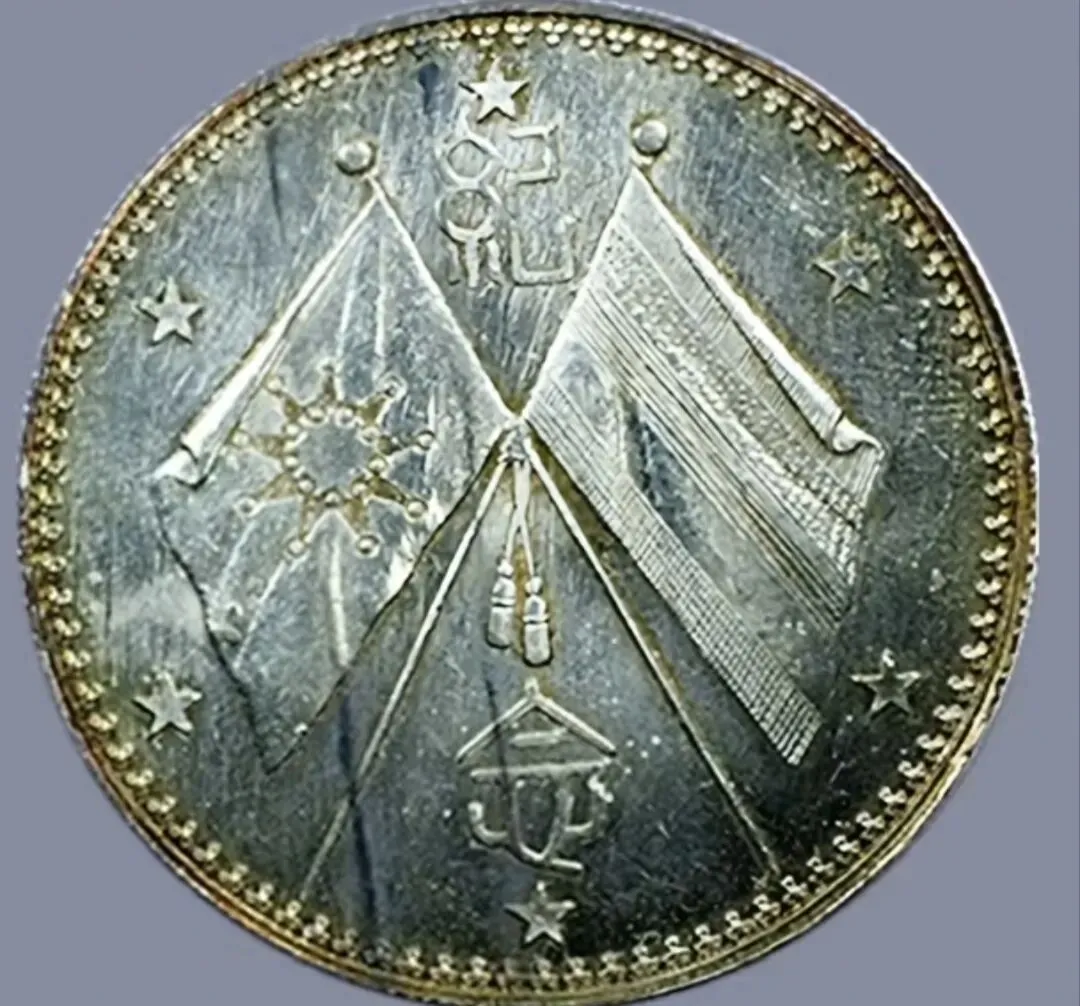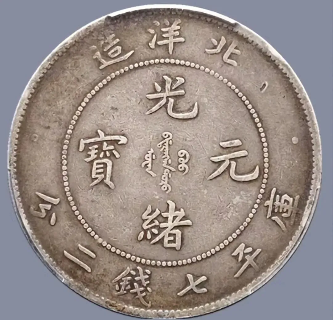 北洋机器局异形龙尾上十字 PCGS评级,AU58
