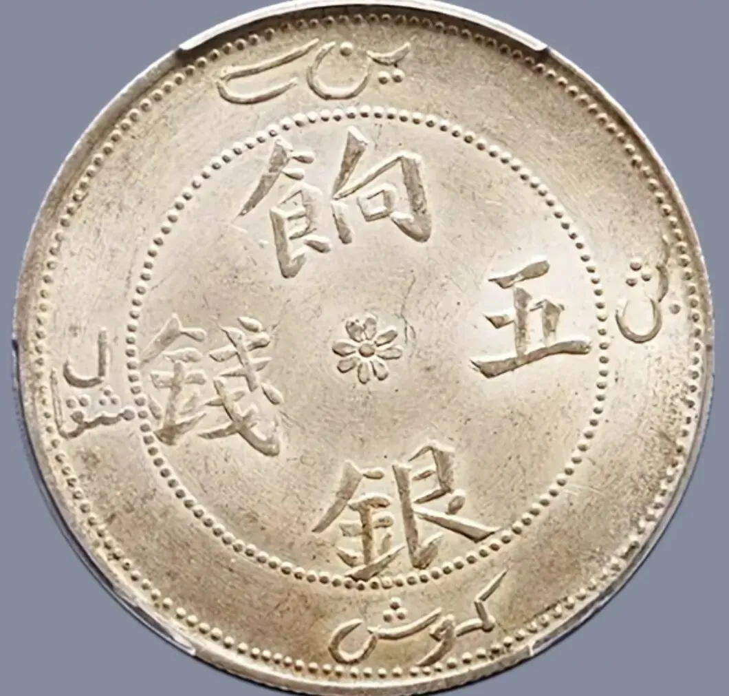 新疆喀什湘平伍钱三花版 PCGS,评级VF 35,