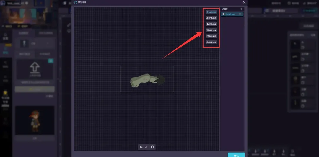 骨骼编辑:调整角色动画的初始动作,可对各部位进行移动、旋转、缩放等操作。