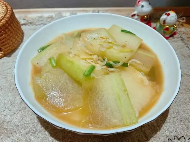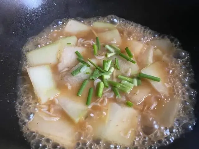 食材:冬瓜、虾皮、葱、食用油、盐、蚝油、姜。